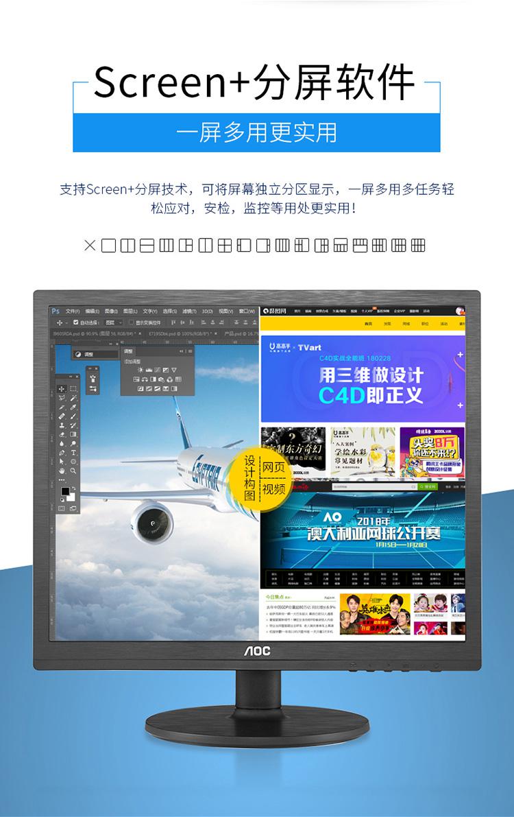 AOC电脑显示器I960SRD 19英寸 5:4 广视角IPS屏 商务办公可壁挂液晶显示屏/台 黑色