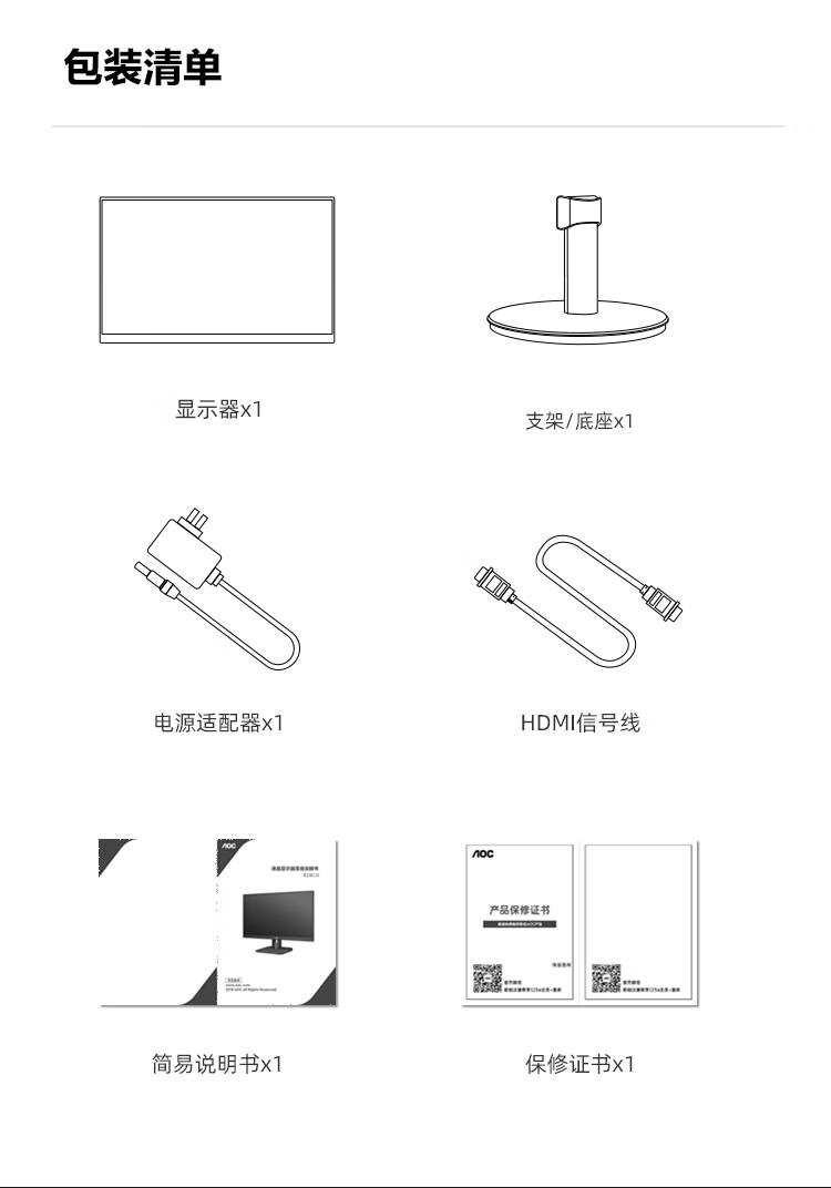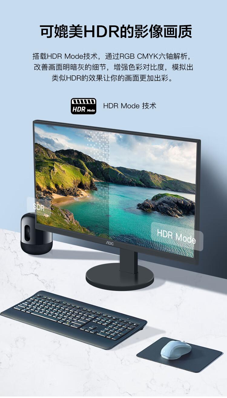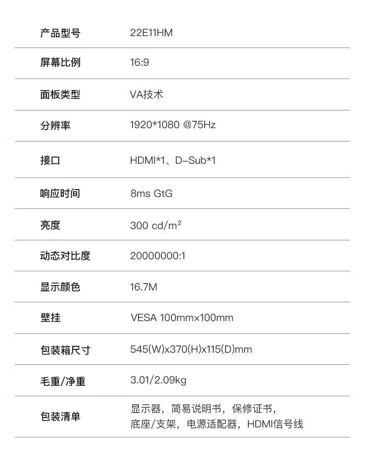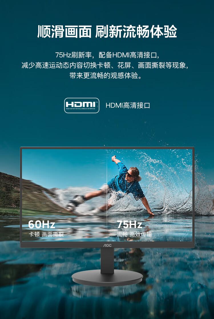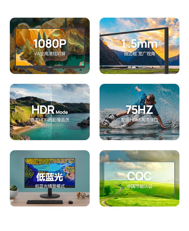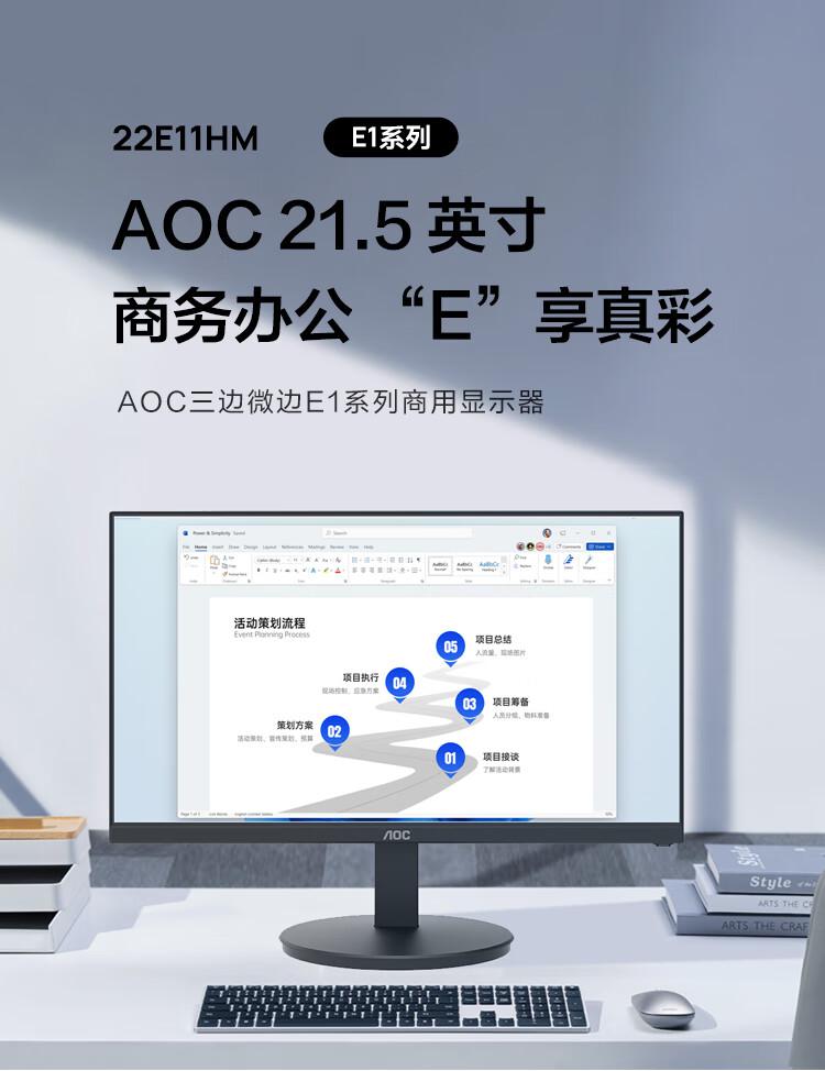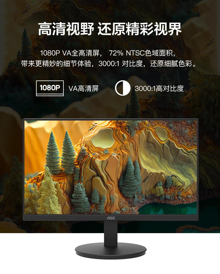 AOC电脑显示器22E11HM 21.5英寸全高清 VA广视角 快拆支架可壁挂 低蓝光显示屏/台 黑色