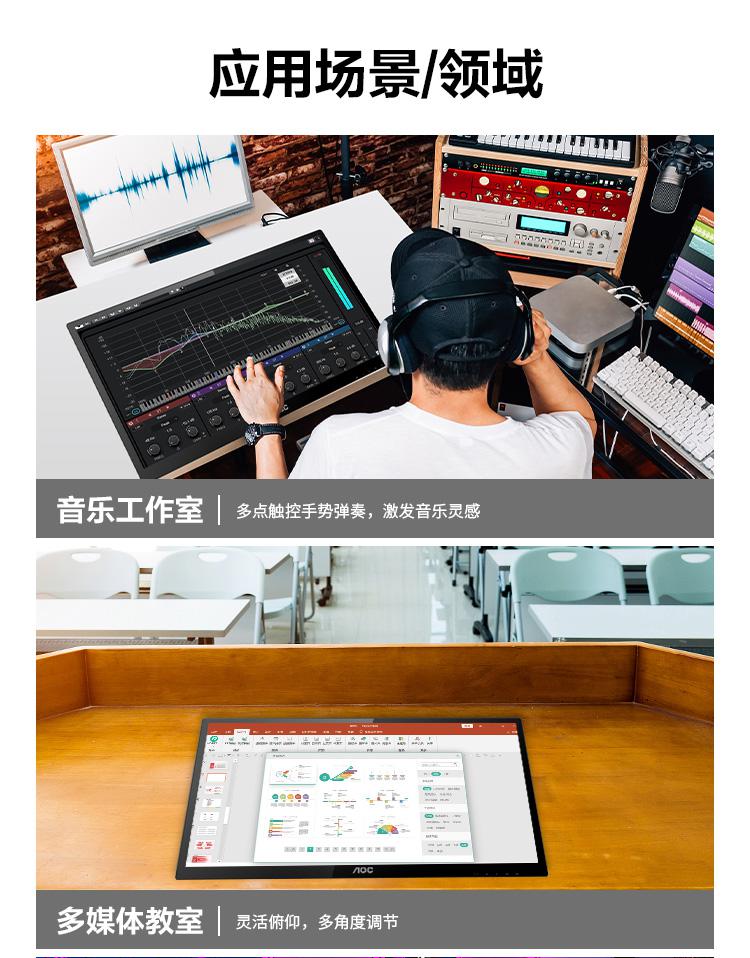 AOC电脑显示器24P2T 23.8英寸10点电容触控 IPS技术 内置音箱 触控显示屏/台 黑色