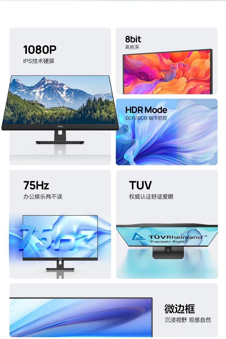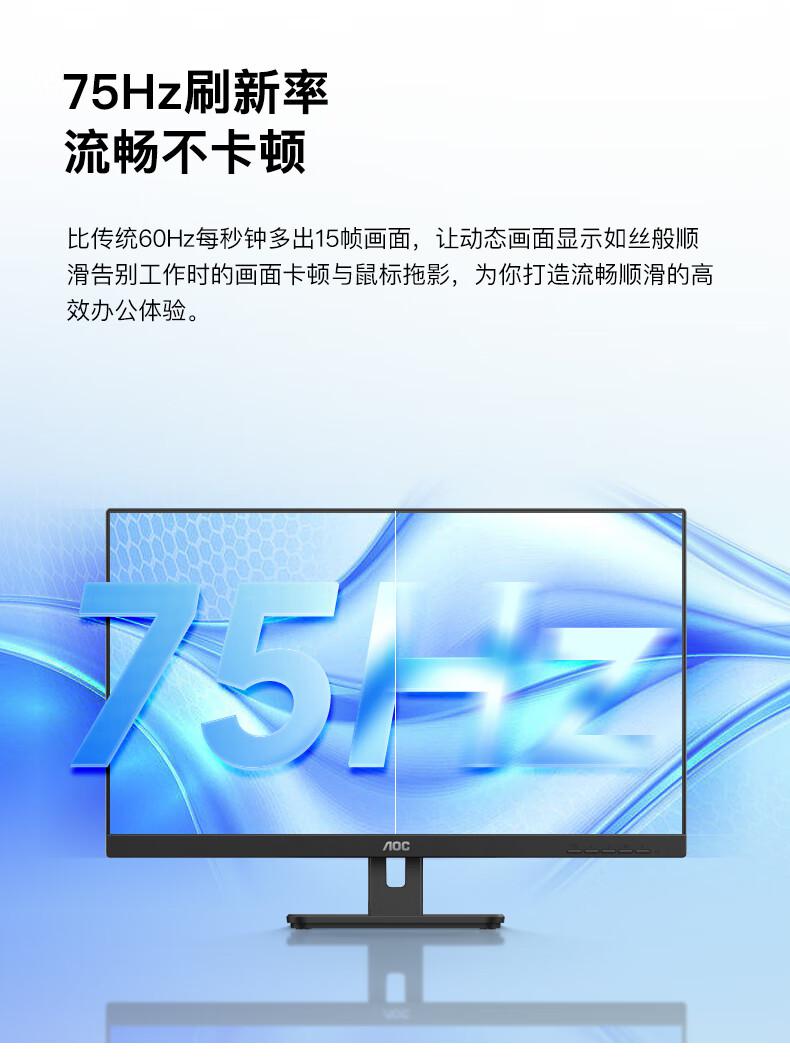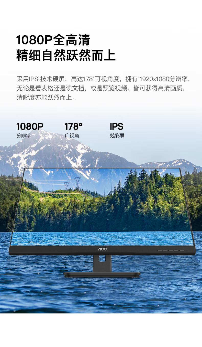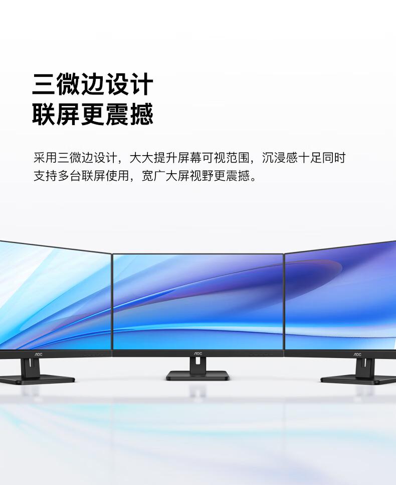 AOC电脑显示器24E3Q 23.8英寸全高清 IPS 三边窄边框 快拆支架可壁挂低蓝光显示屏/台 黑色