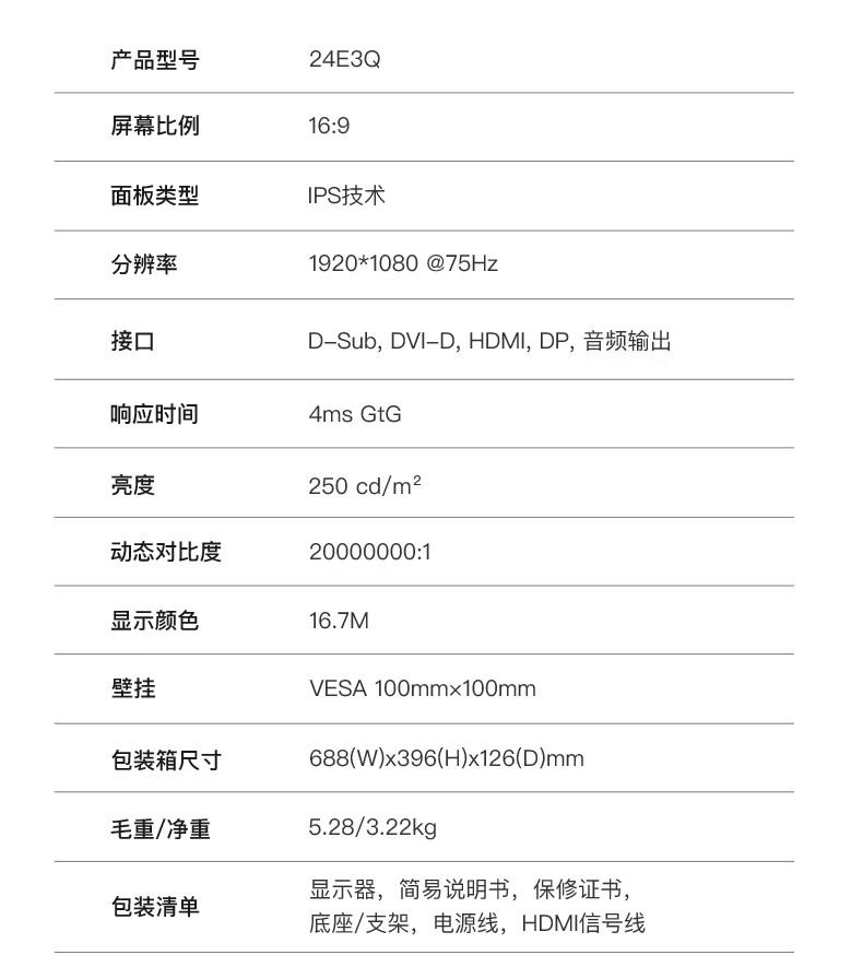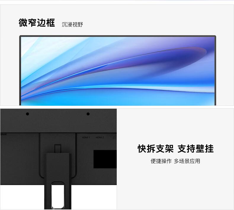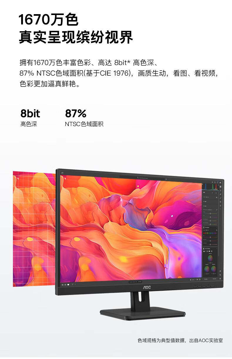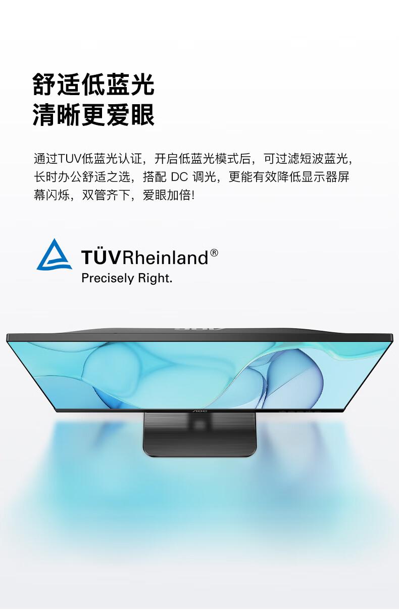 AOC电脑显示器24E3Q 23.8英寸全高清 IPS 三边窄边框 快拆支架可壁挂低蓝光显示屏/台 黑色