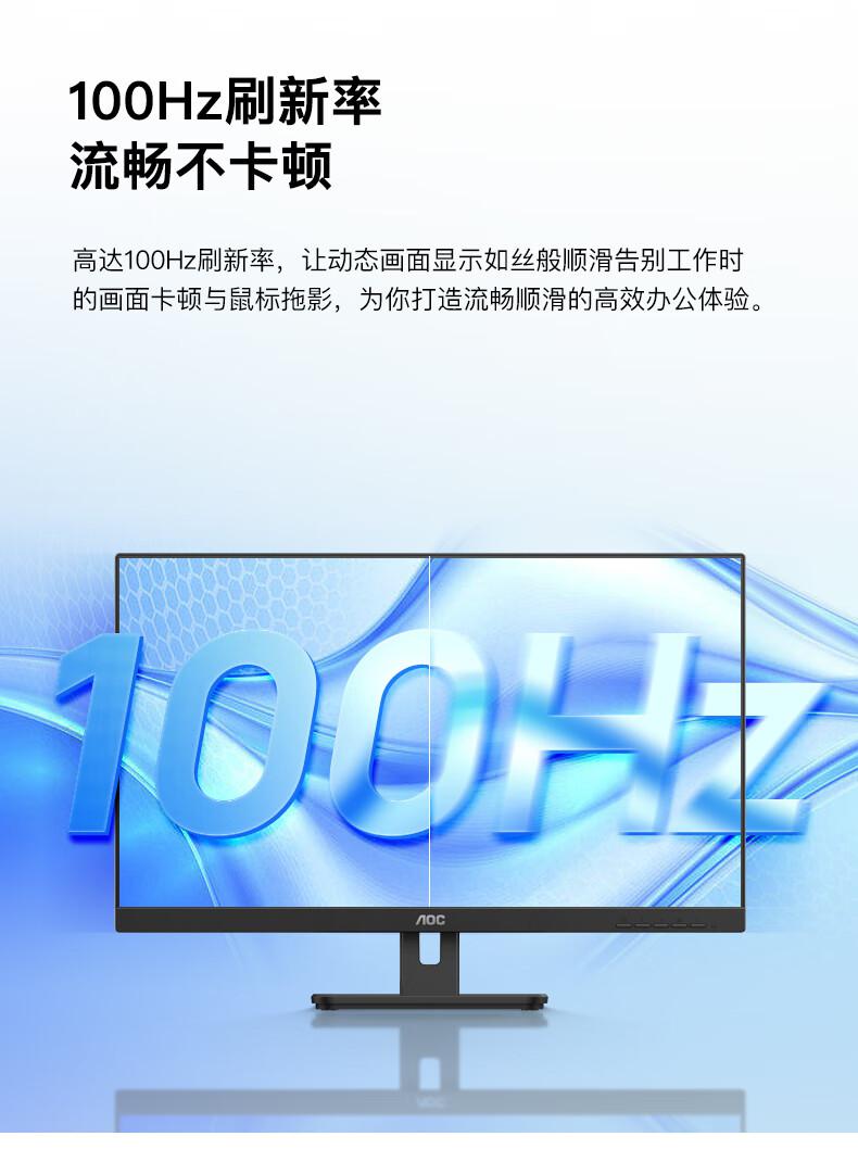 AOC电脑显示器27E3H2 27英寸 IPS 广色域 100hz 全高清窄边框 节能显示屏/台 黑色