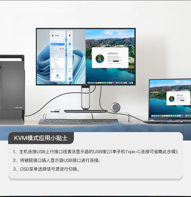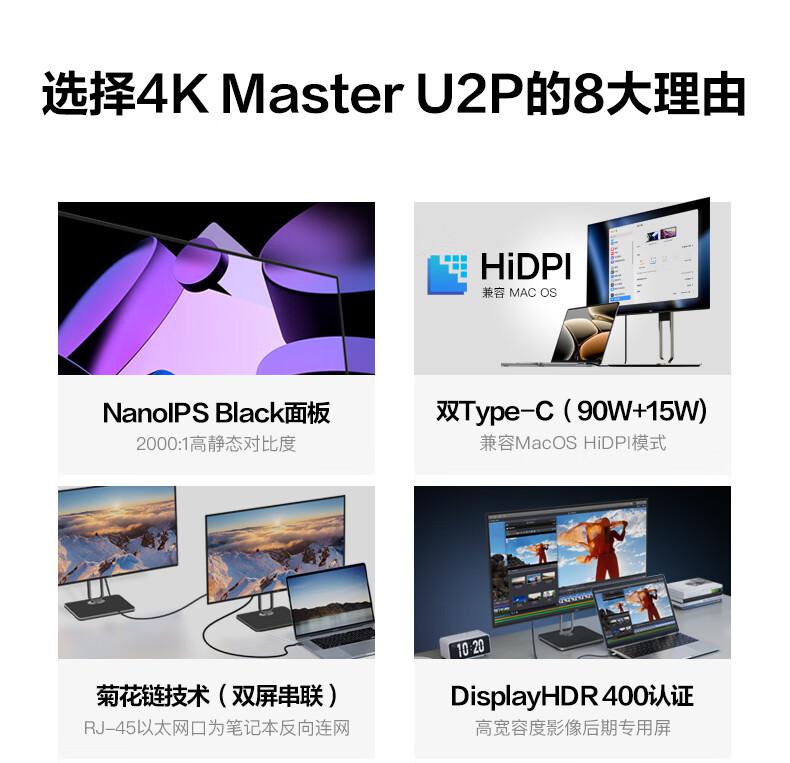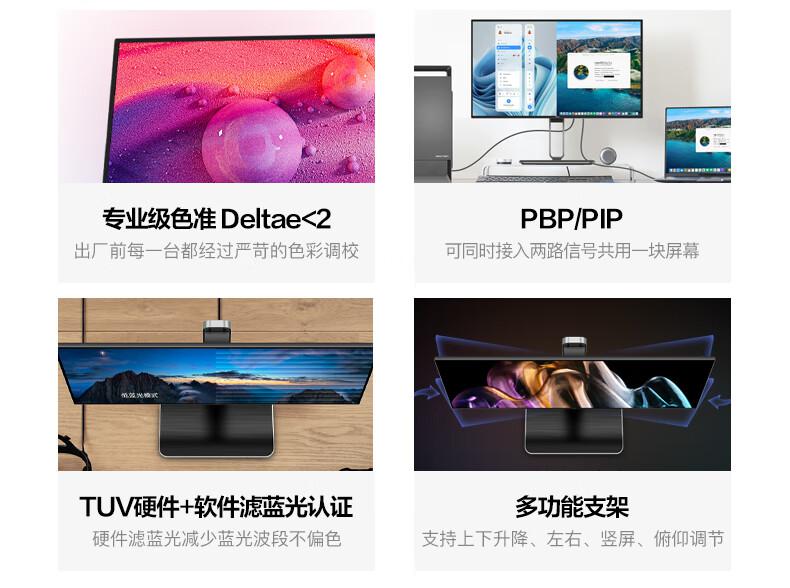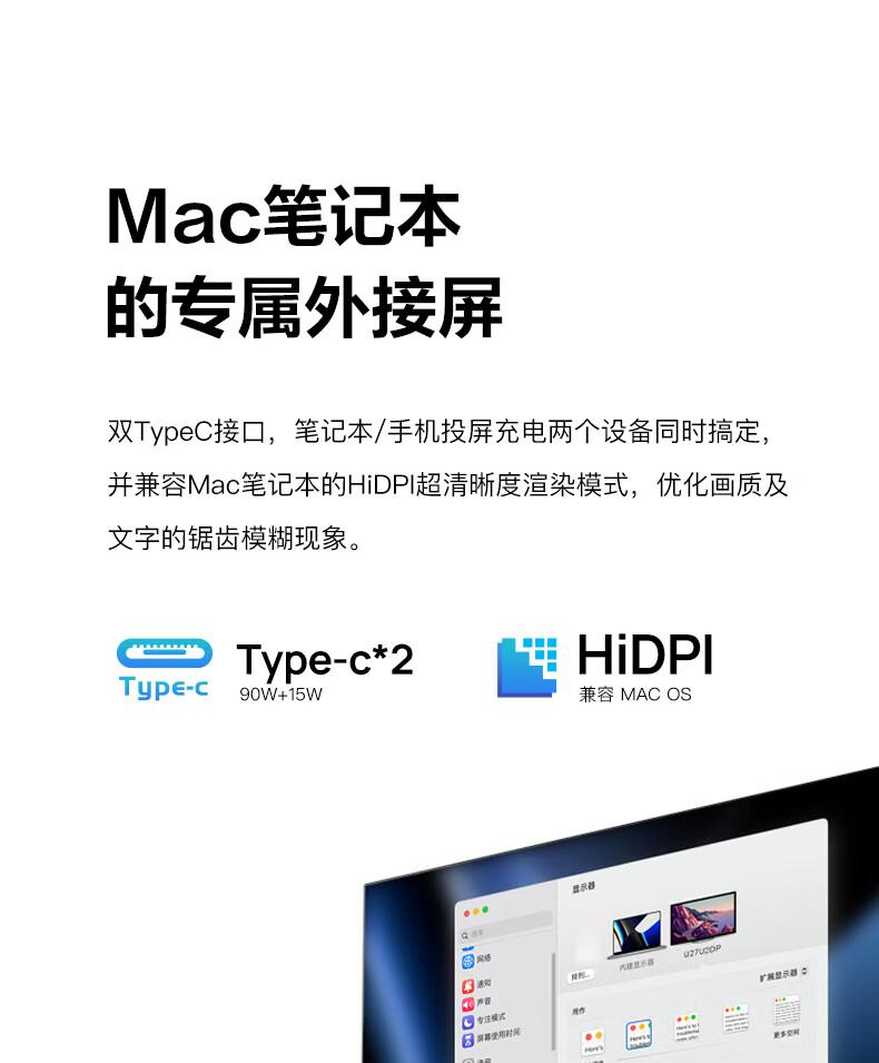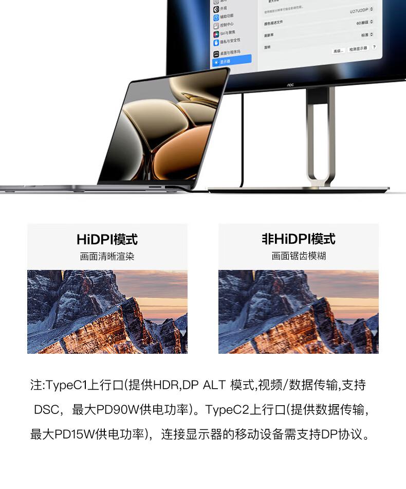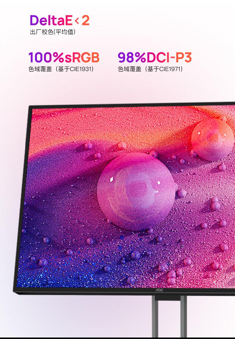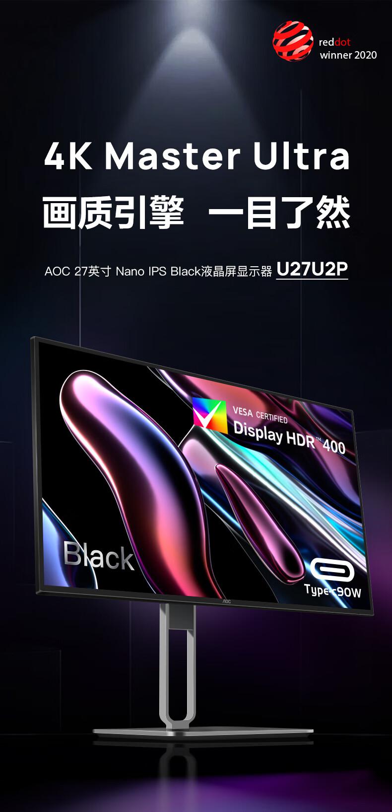 AOC电脑显示器U27U2P 27英寸 4K Nano IPS TUV低蓝光 TypeC90W/台 黑色