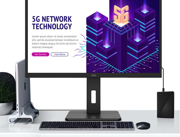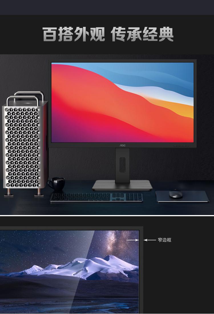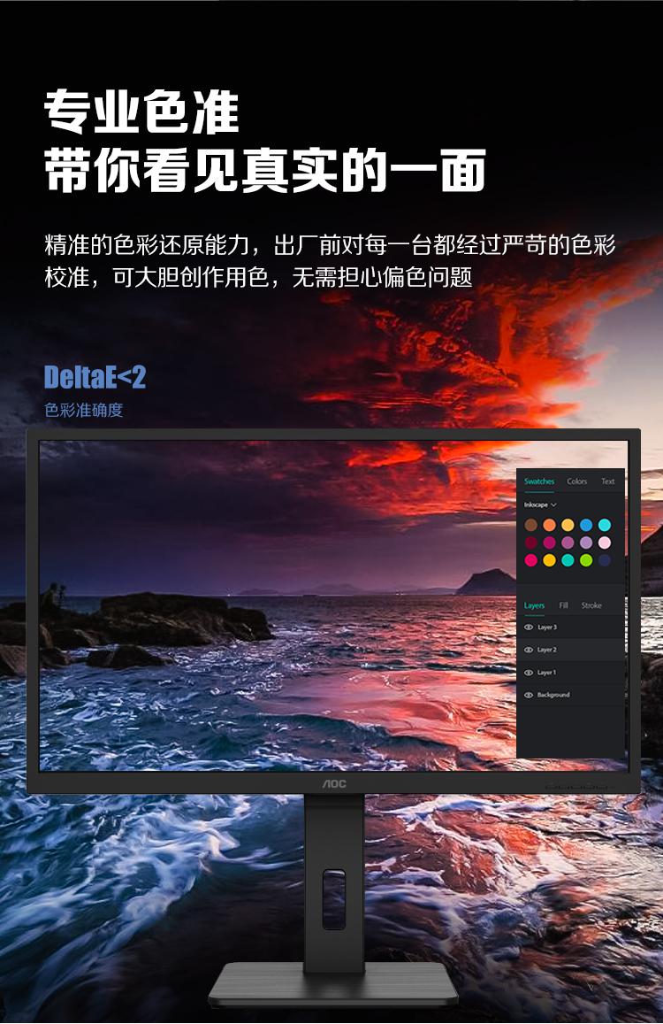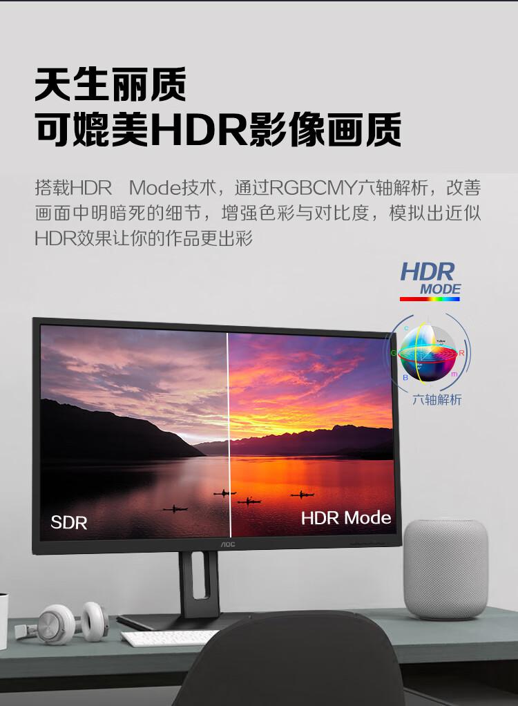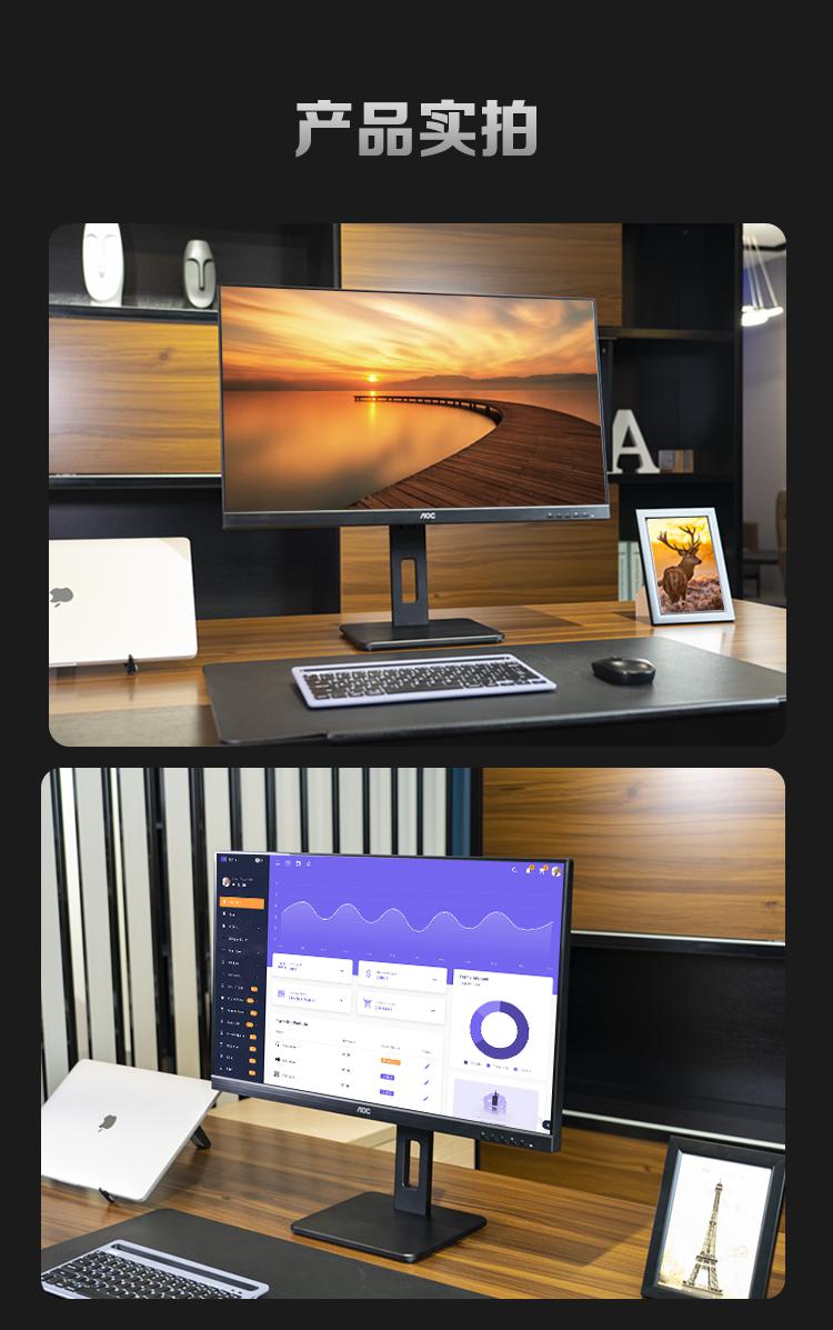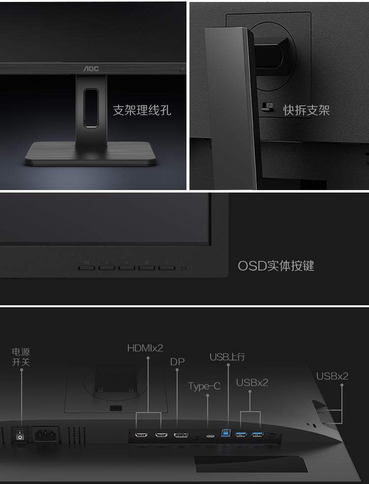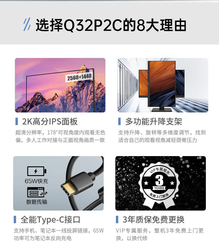 AOC电脑显示器Q32P2C 31.5英寸2K高清 10Bit色彩 IPS技术微边框 双向旋转/台 黑色