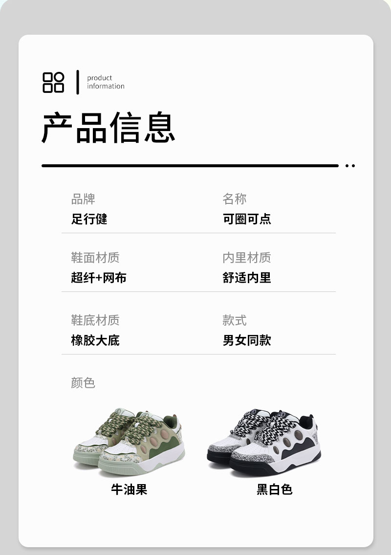 足行健按摩鞋春季休闲百搭元气潮流板鞋-可圈可点 单位:双 黑白色 35