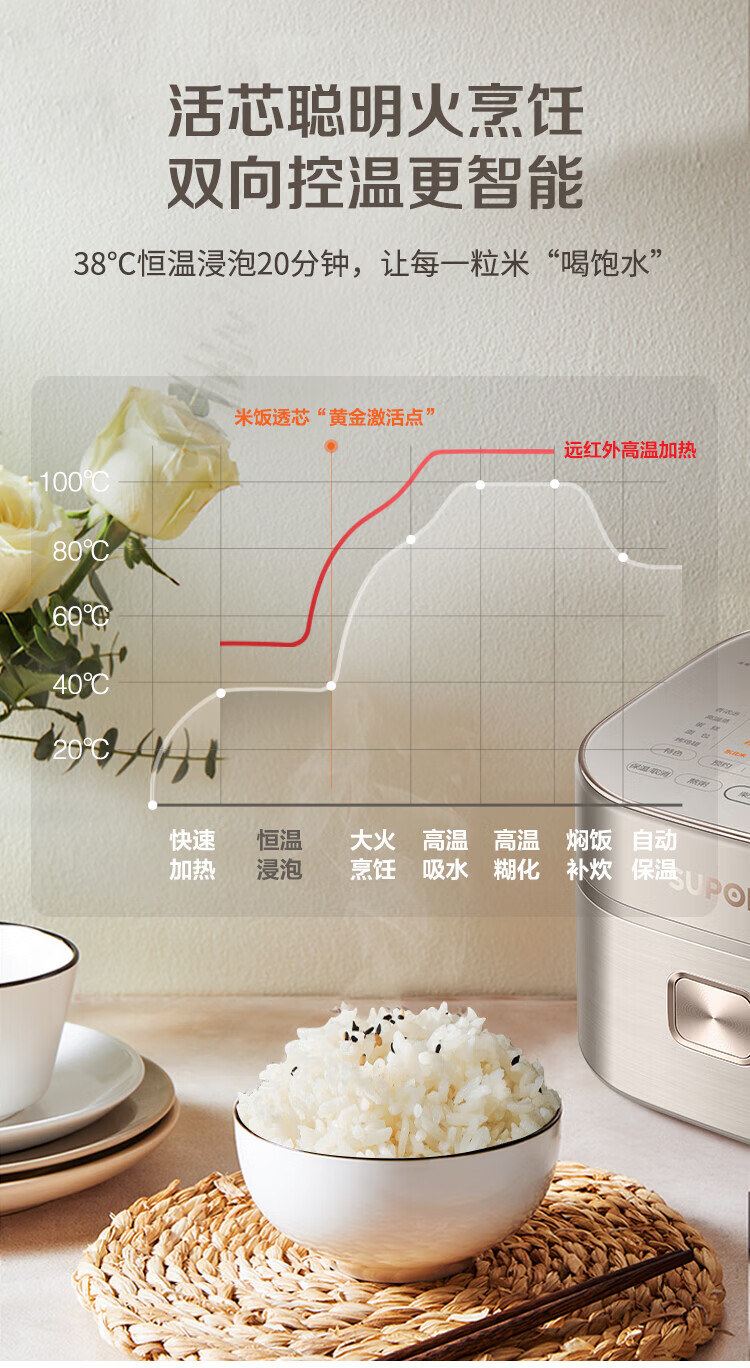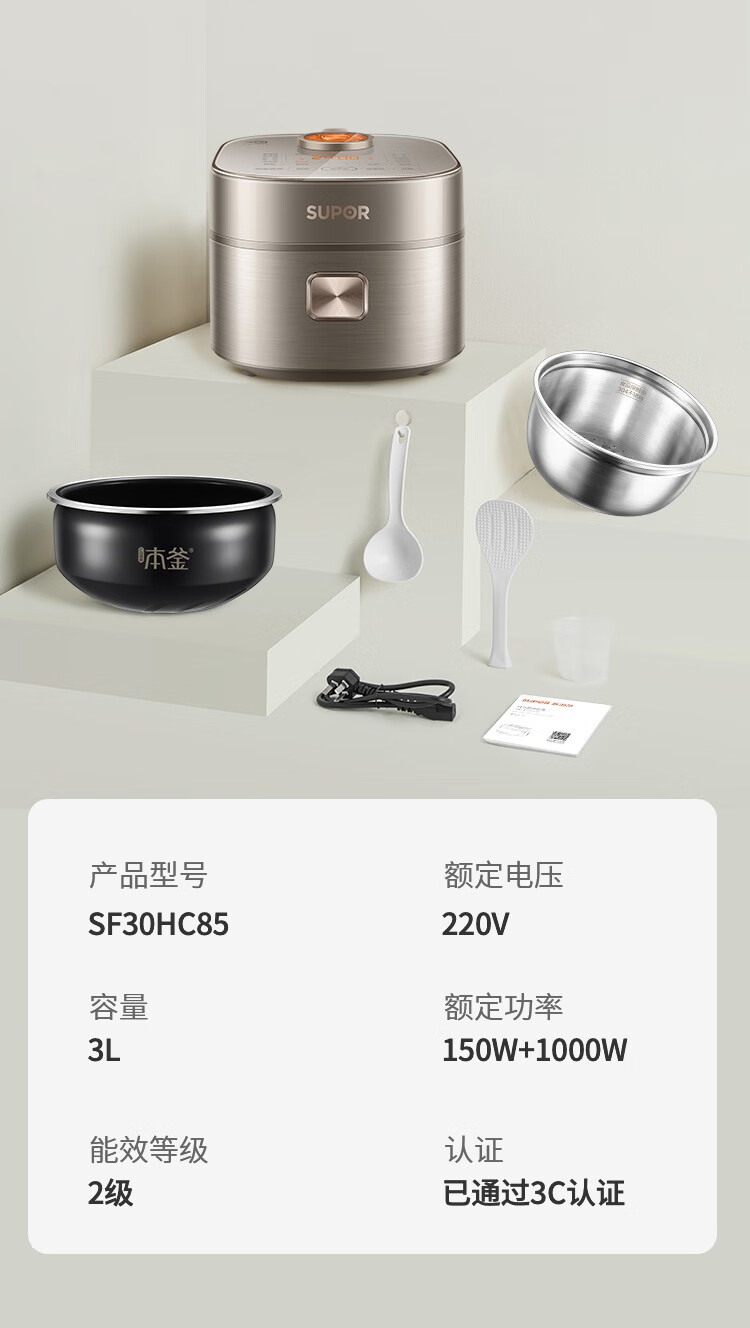 苏泊尔(SUPOR) 多功能聚能本釜不粘内胆电饭煲 SF30HC85 3L 香槟金(单位:台)