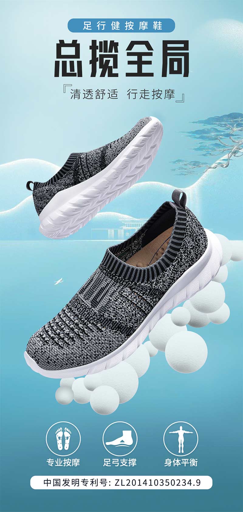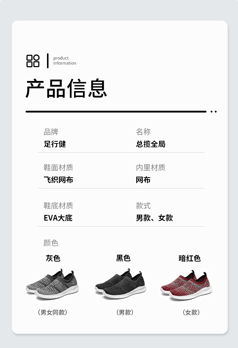 足行健按摩鞋夏季一脚蹬轻便舒适透气中老年女款鞋子-总揽全局 单位:双 黑色 40