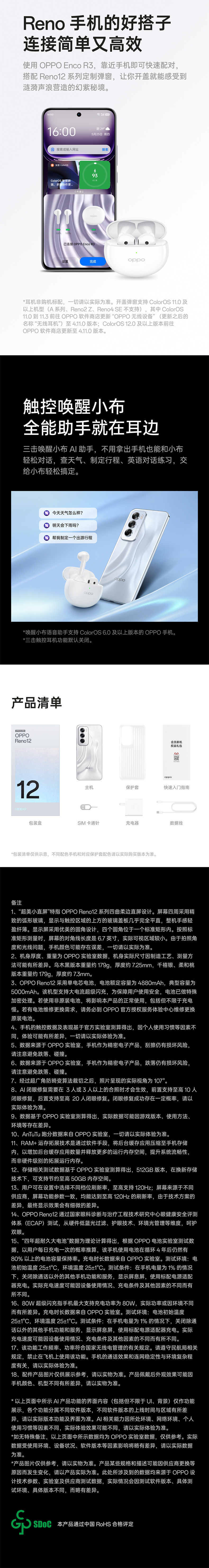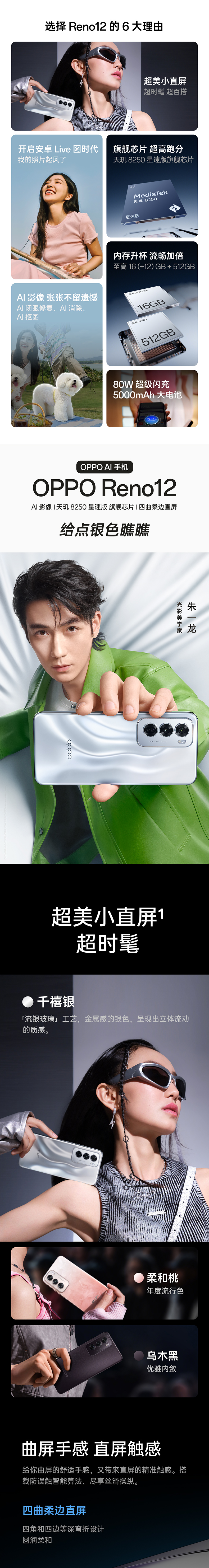 OPPO Reno12超美小直屏 天玑8250星速版旗舰芯 实况照片 5G AI手机(单位:台) 晨雾蓝 12G+256G