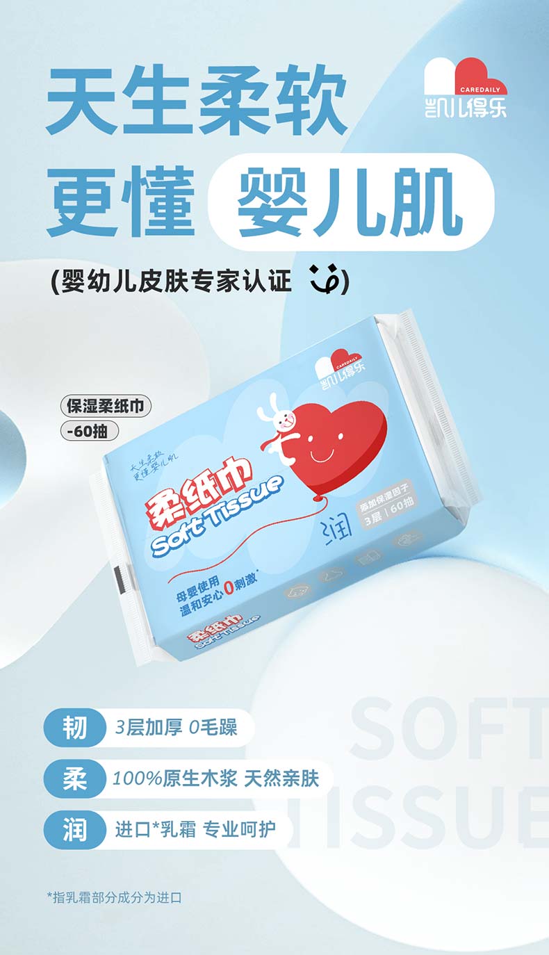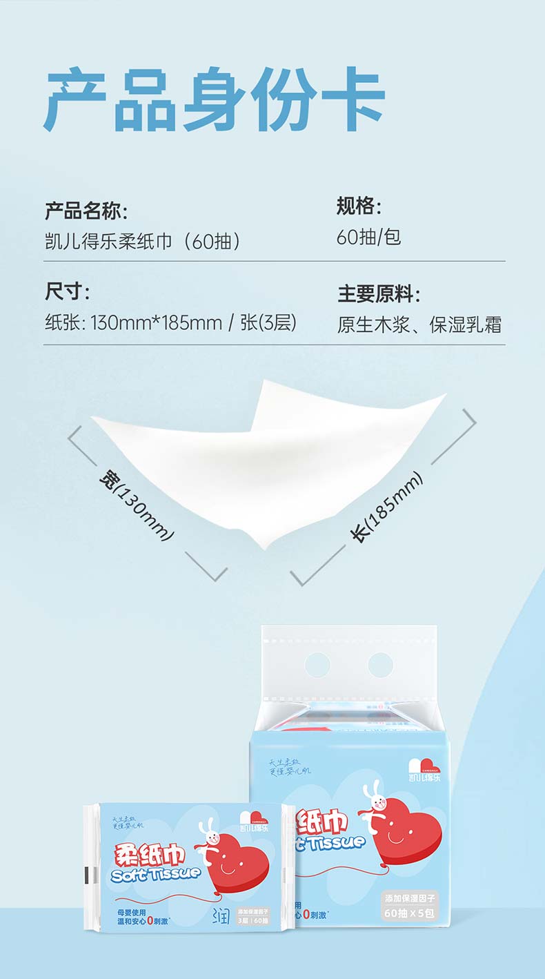 凯儿得乐经典款柔纸巾60抽*20包(单位:箱) 60抽*20包