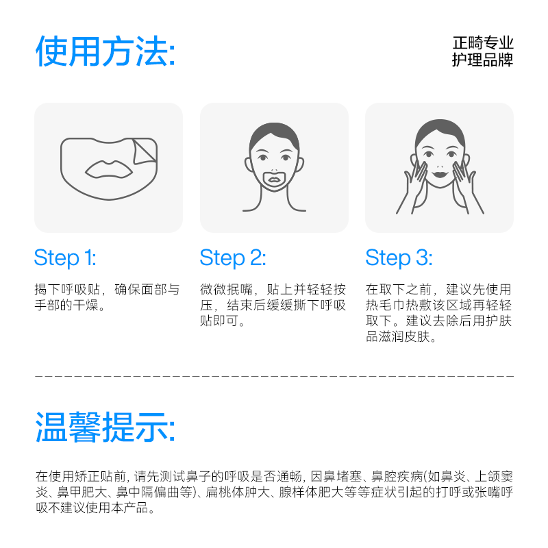 呼吸海洋嘴巴封口贴闭嘴神器呼吸矫正贴 30贴/1盒 亲肤材质(单位:盒) 蓝色