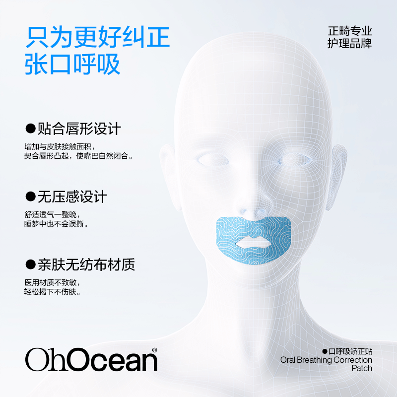 呼吸海洋嘴巴封口贴闭嘴神器呼吸矫正贴 30贴/2盒 亲肤材质