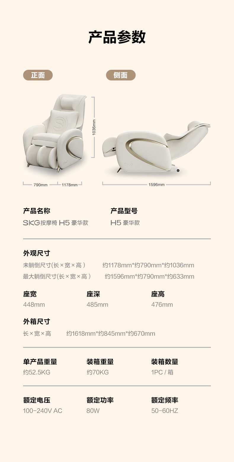 SKG H5系列1代 SKG按摩椅 米金色 豪华款(单位:台) 香槟黄