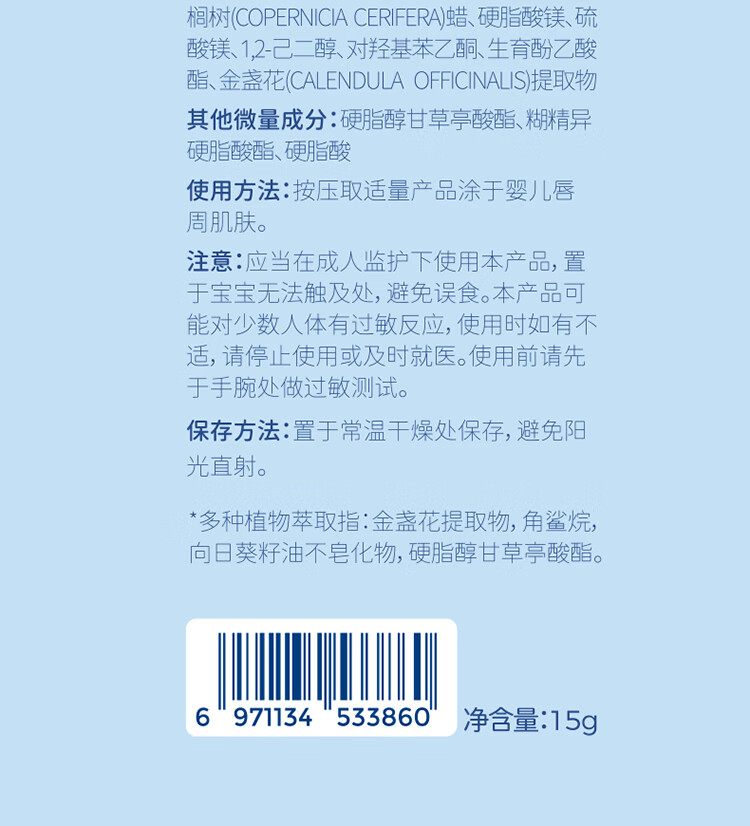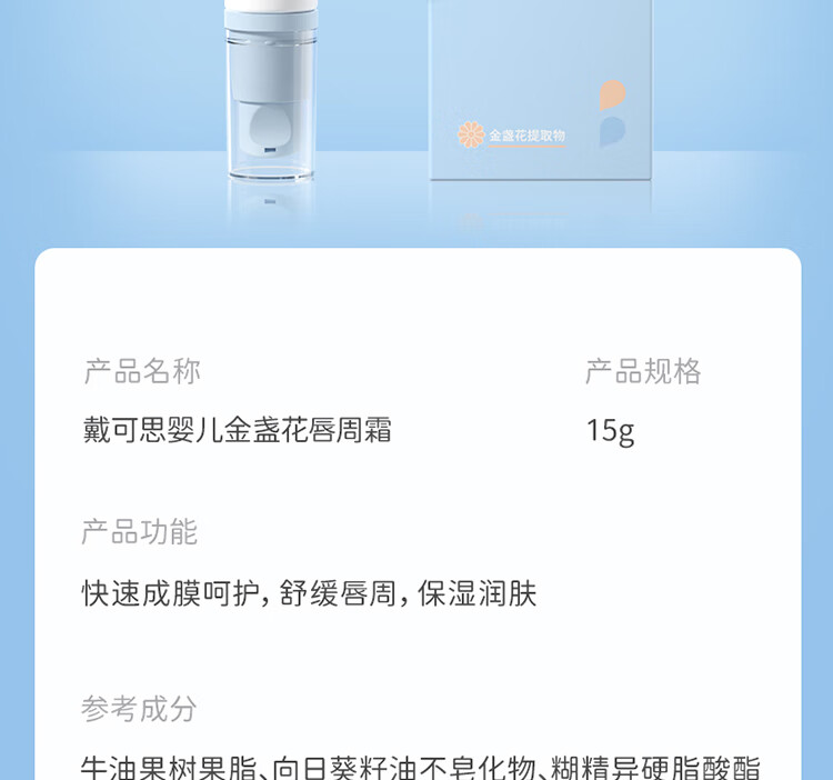 戴·可·思(Dexter)婴儿金盏花唇周霜宝宝口水膏15g 单位:支 白色