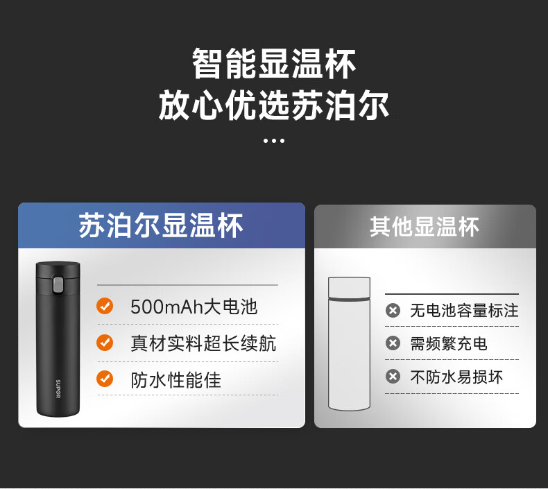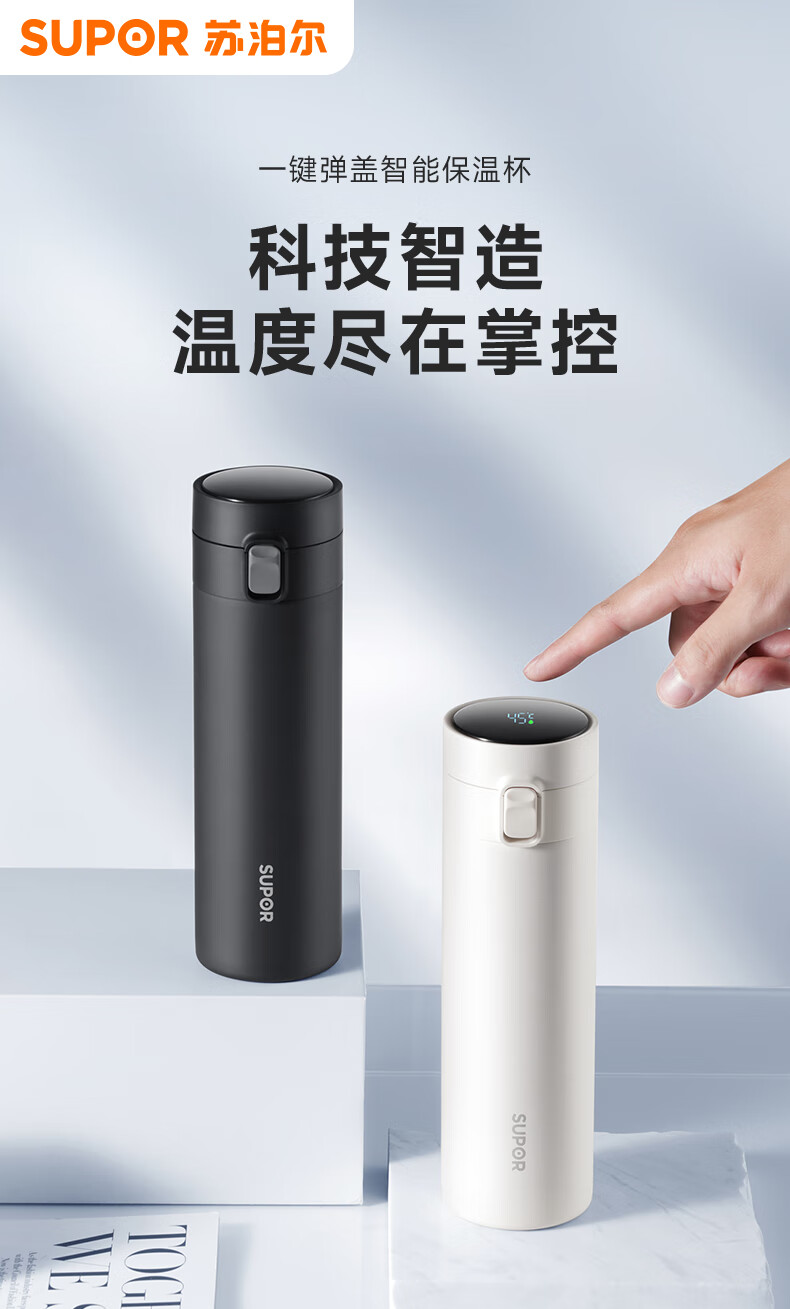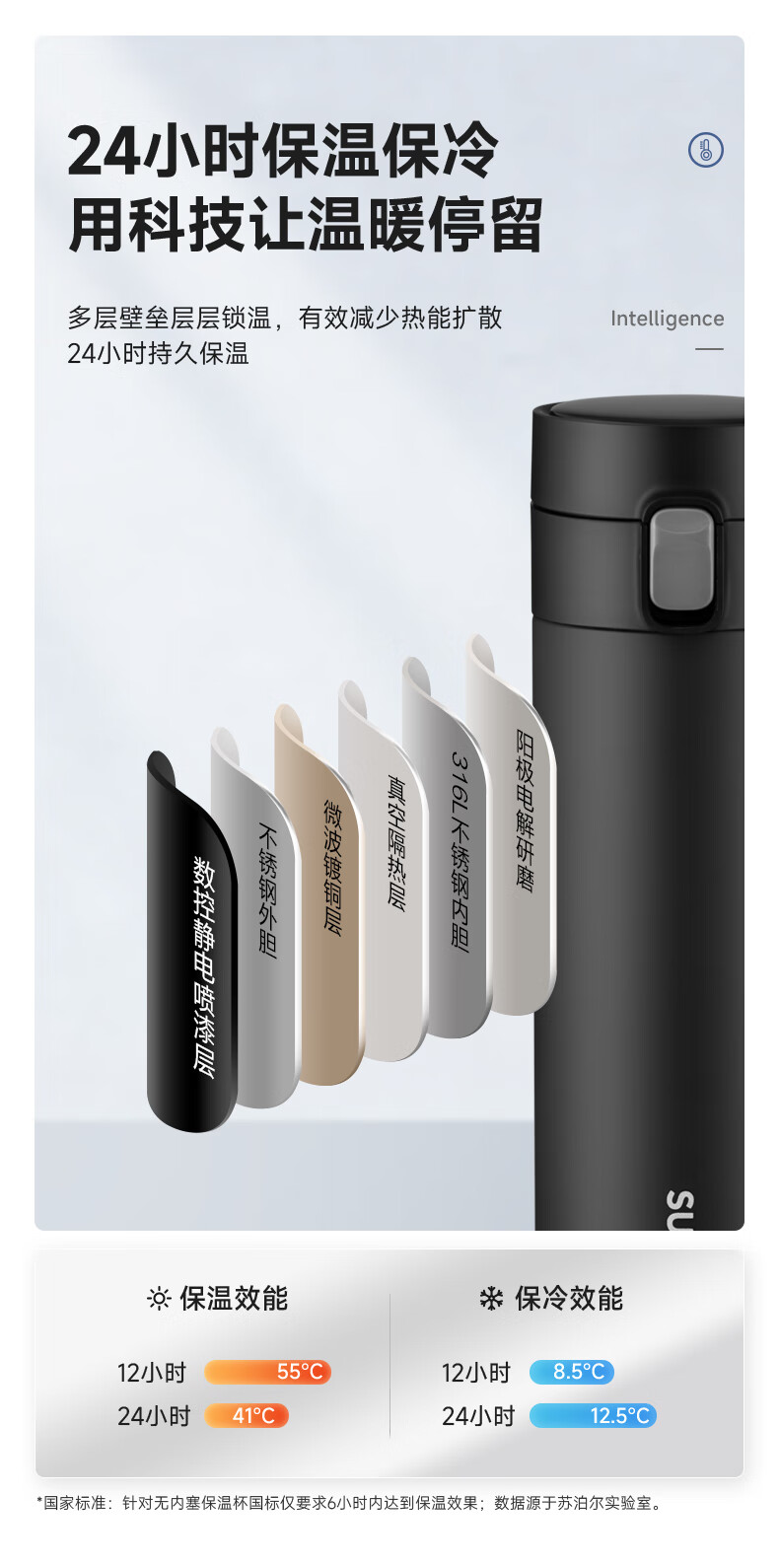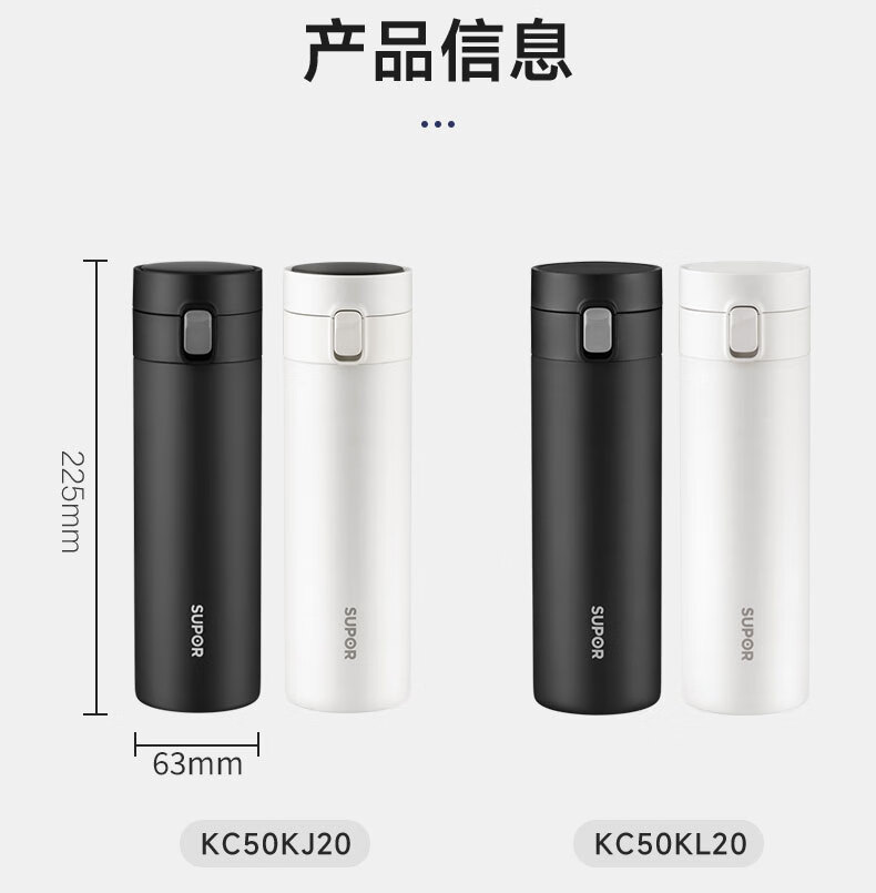 苏泊尔(SUPOR) KC50KJ20 500ml 智能数显保温杯 曜石黑(单位:个)
