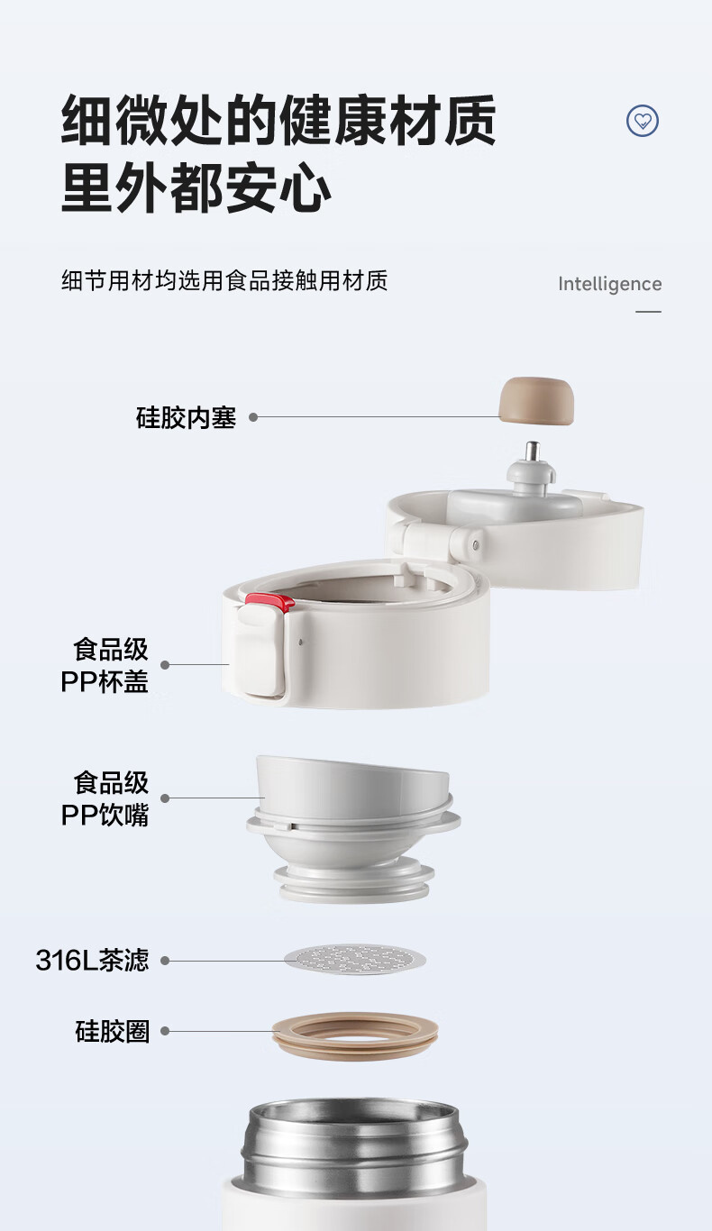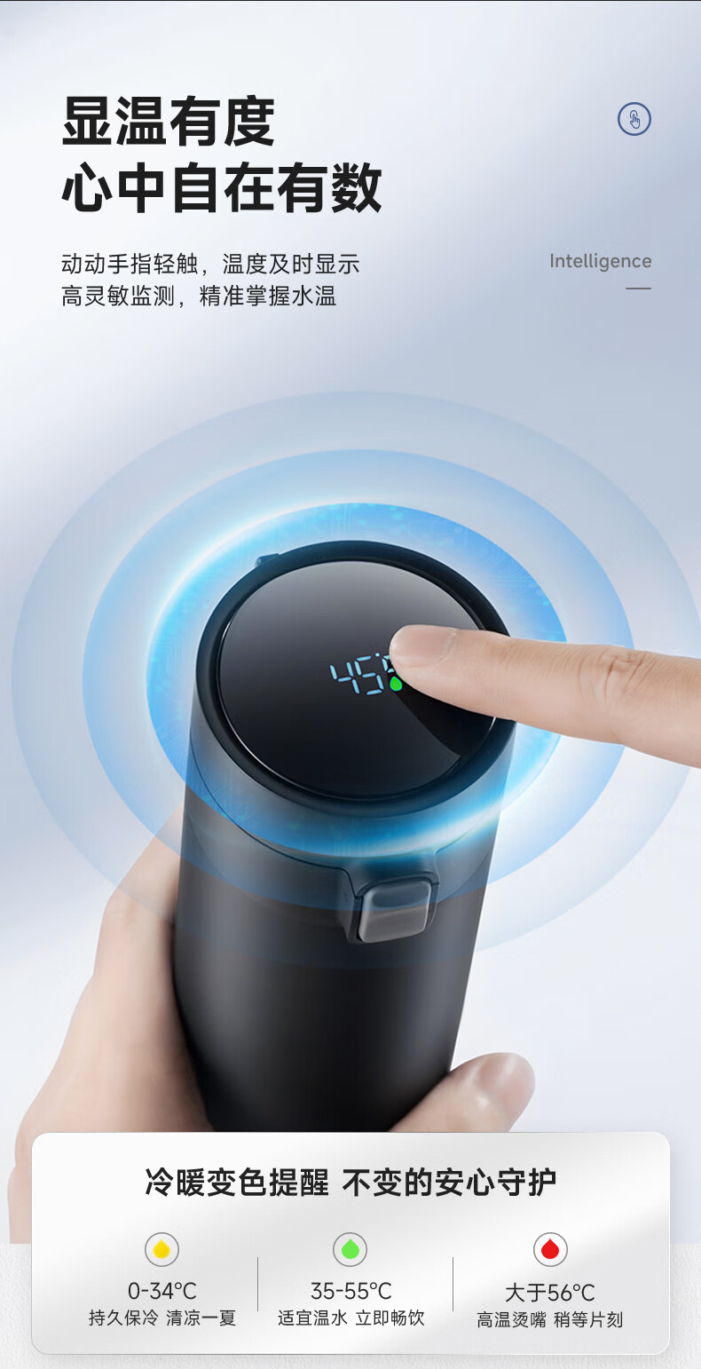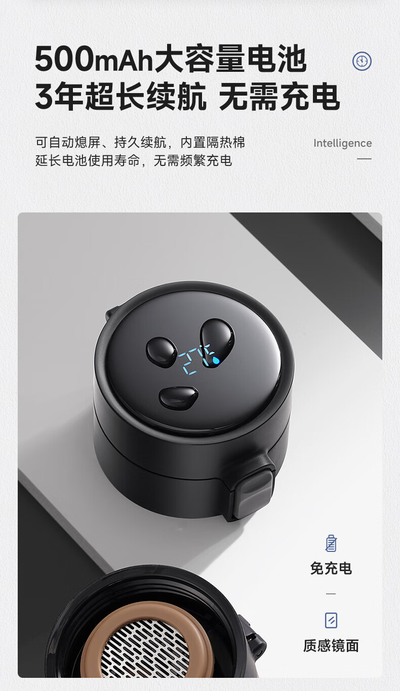 苏泊尔(SUPOR) KC50KJ20 500ml 智能数显保温杯 曜石黑(单位:个)