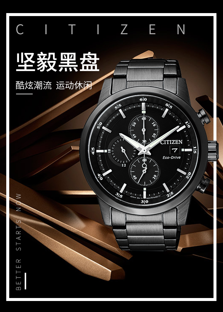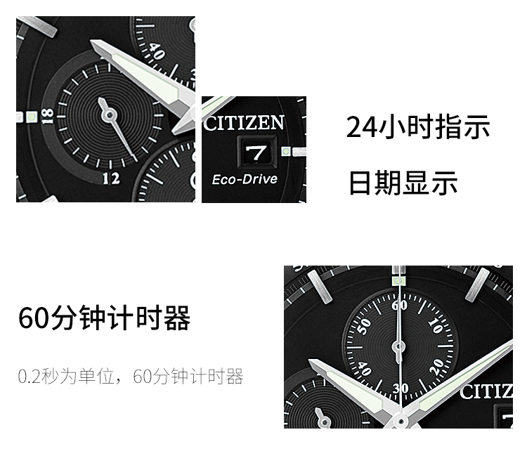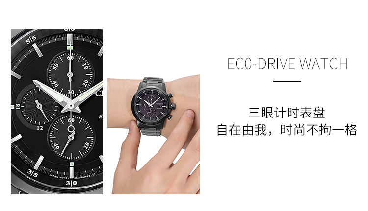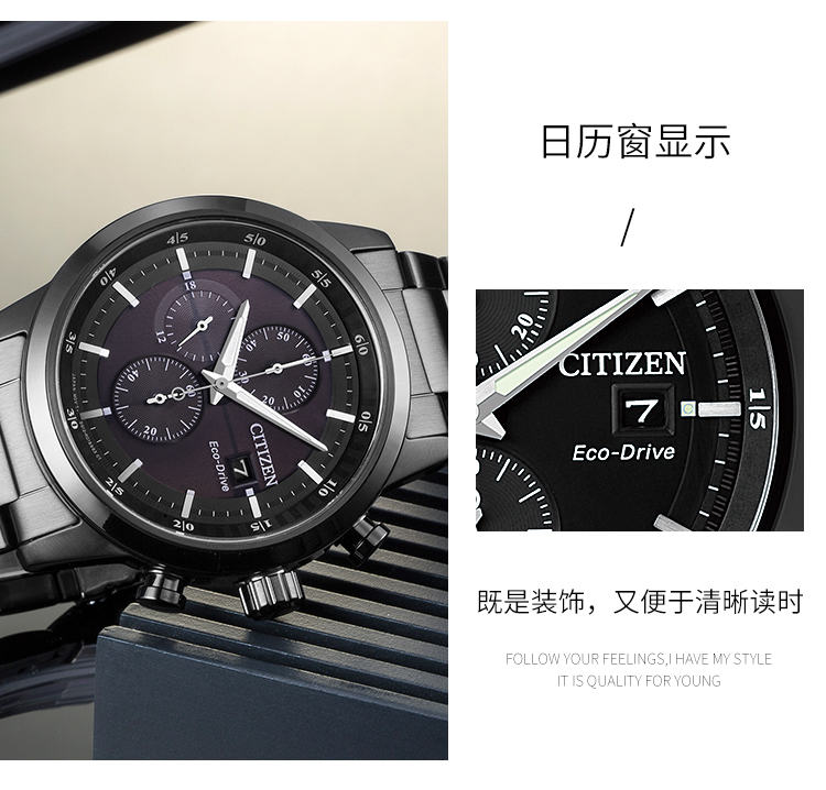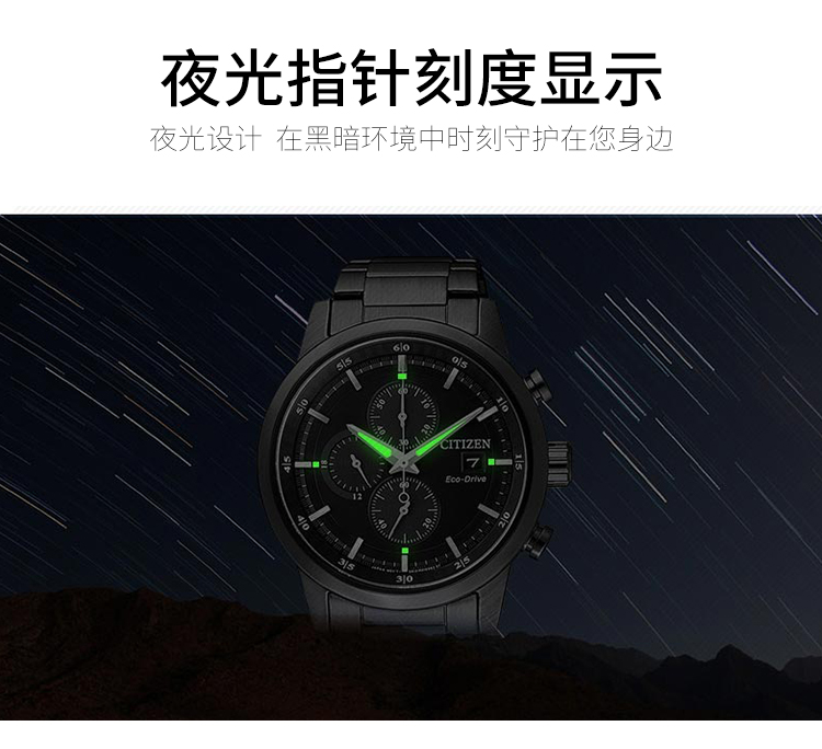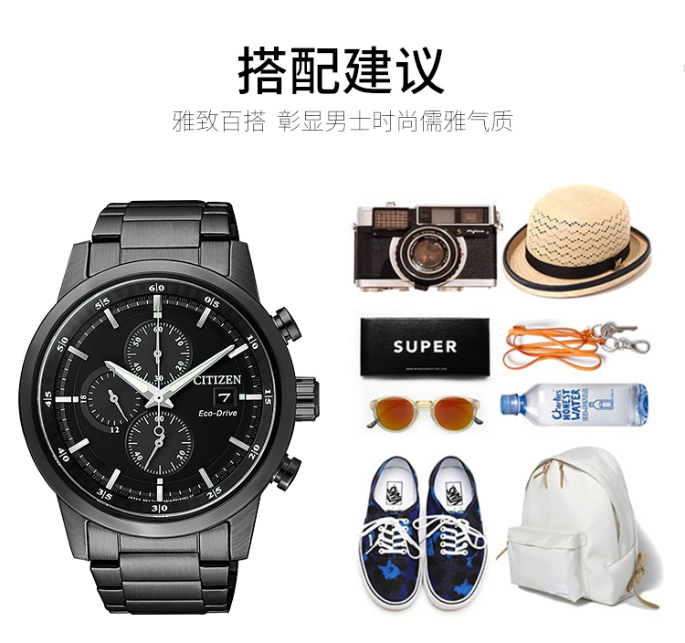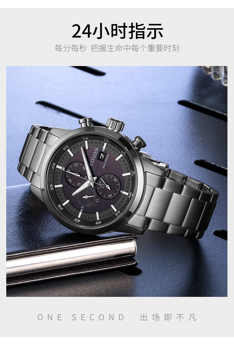 Citizen西铁城 光动能多功能黑盘钢带男表CA0615-59E(单位:个) 黑色