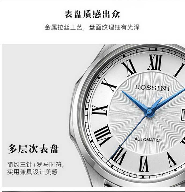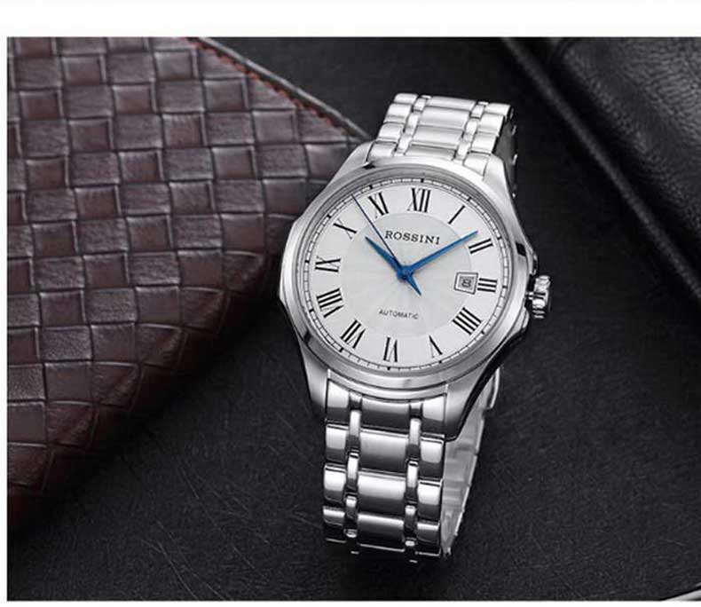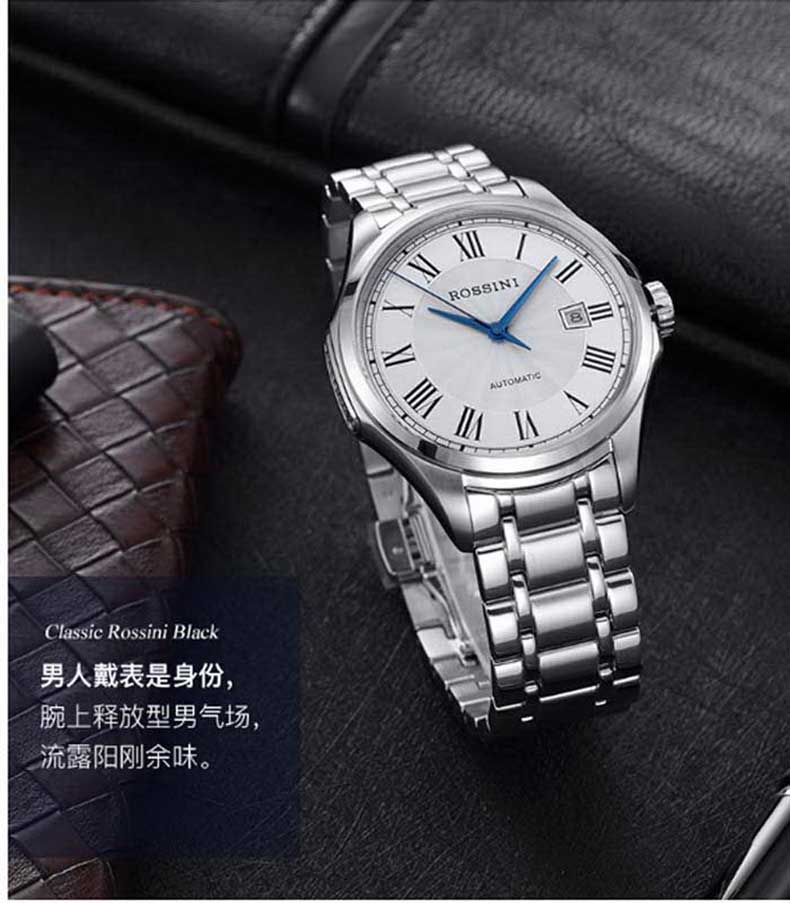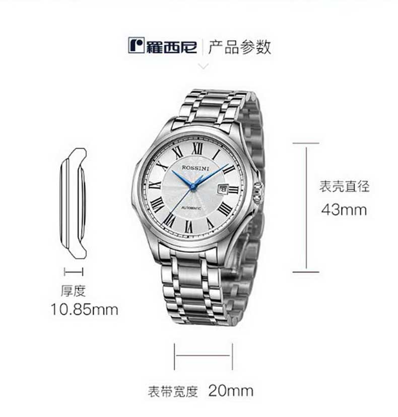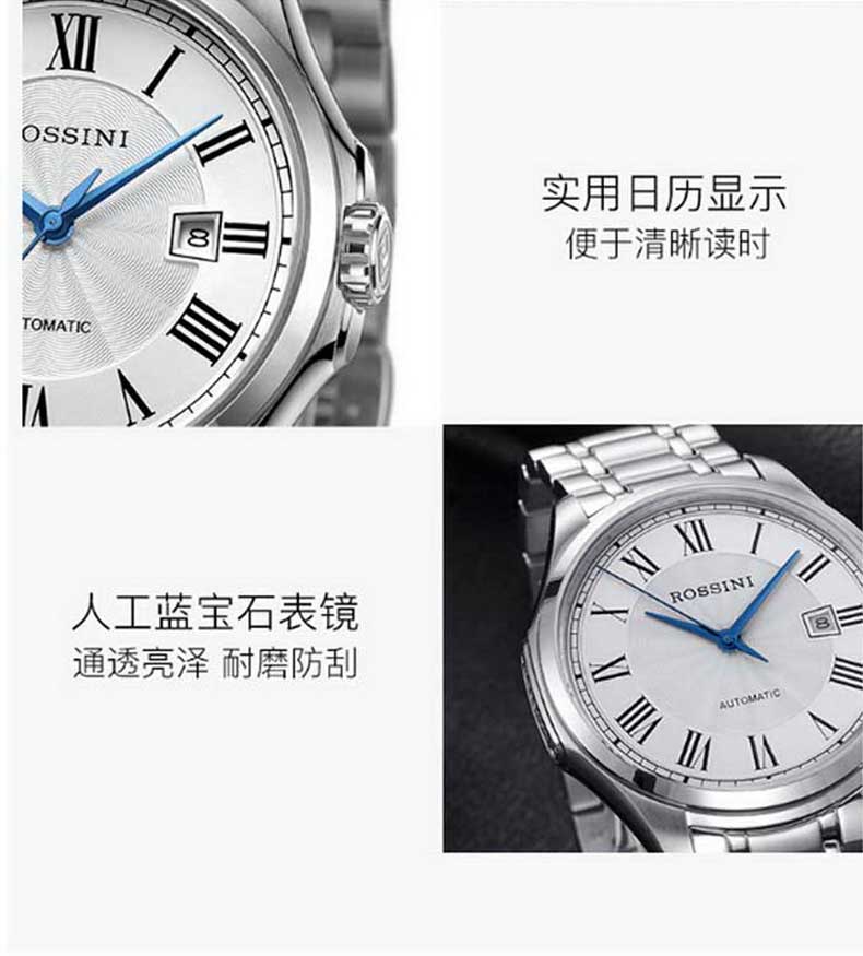 Rossini罗西尼 雅尊商务系列休闲时尚日历钢带机械男表 原色钢带 8713W01A(单位:只) 白色