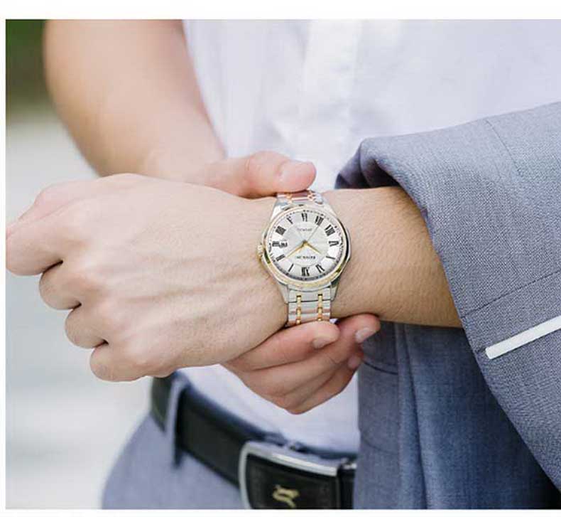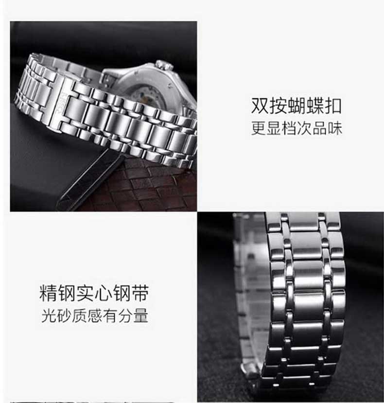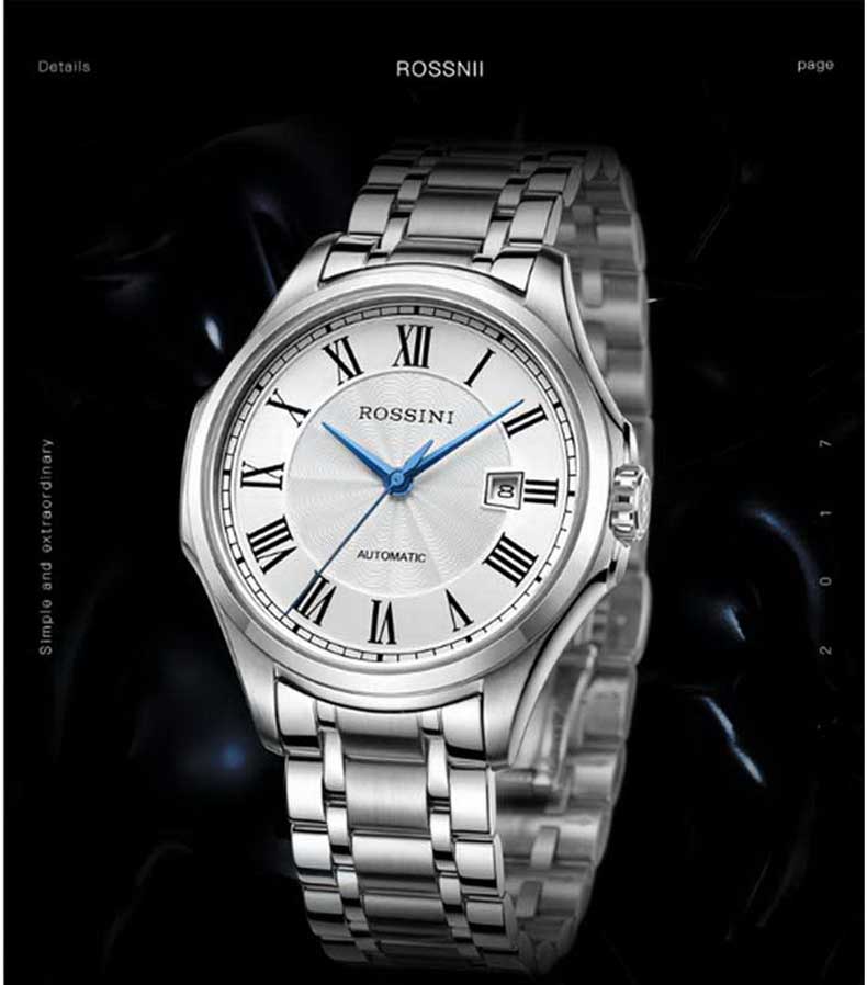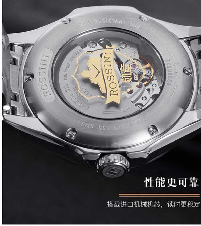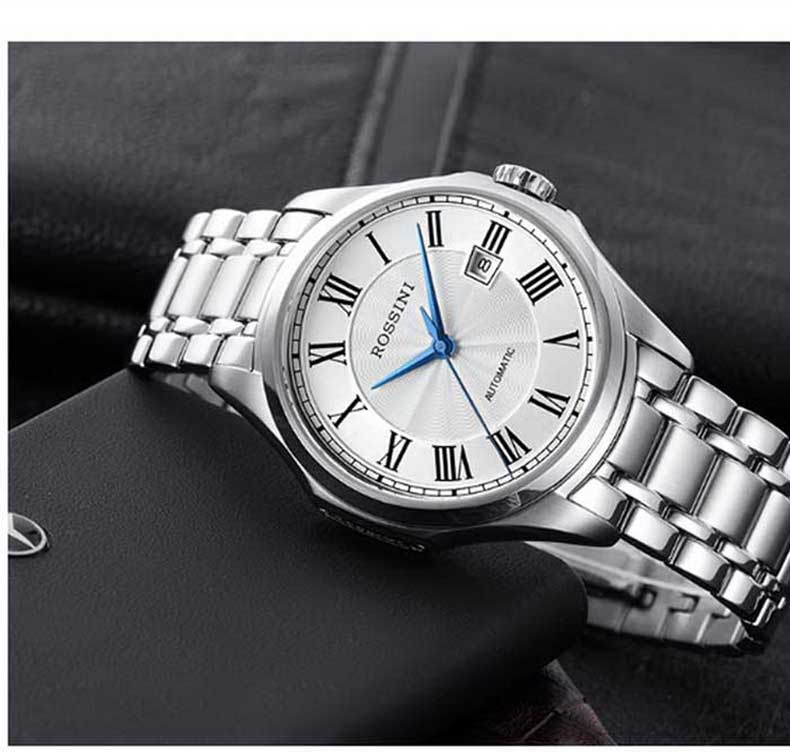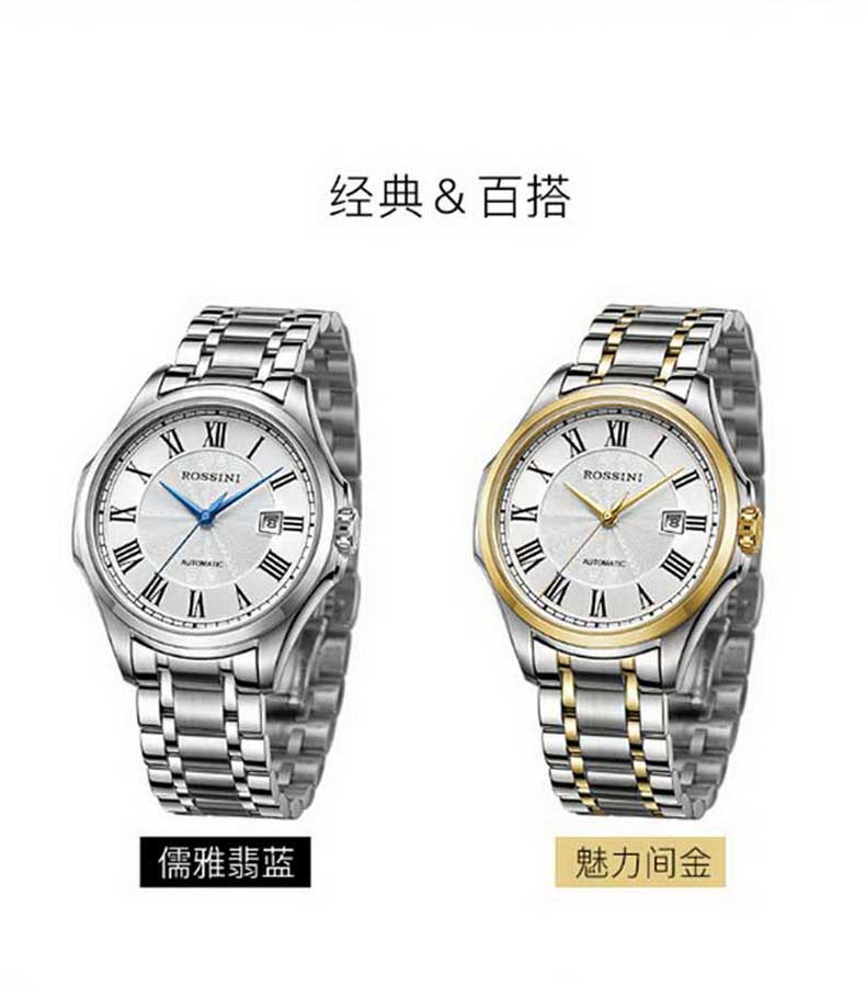 Rossini罗西尼 雅尊商务系列休闲时尚日历钢带机械男表 原色钢带 8713W01A(单位:只) 白色
