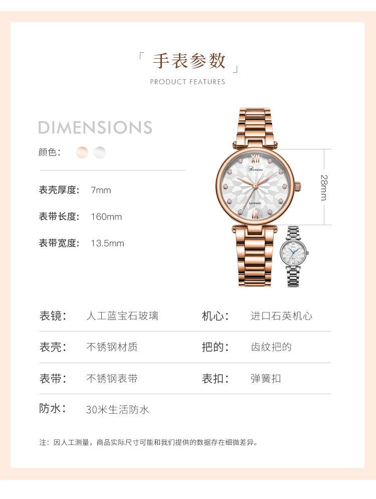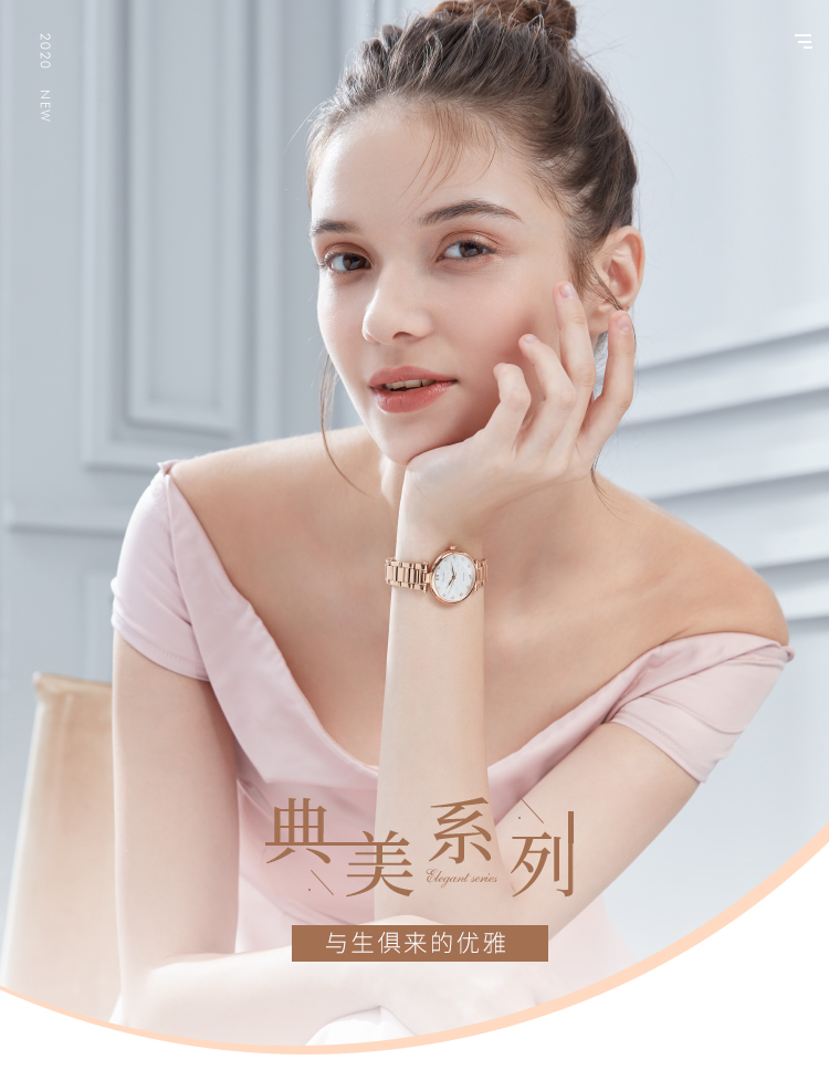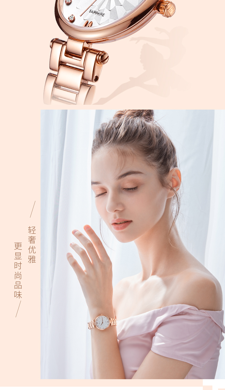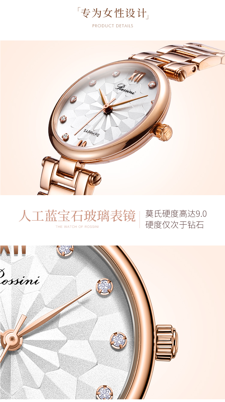 Rossini罗西尼 典美系列 时尚防水石英手表白盘玫瑰金钢带女表5924G01B(单位:只) 玫瑰金