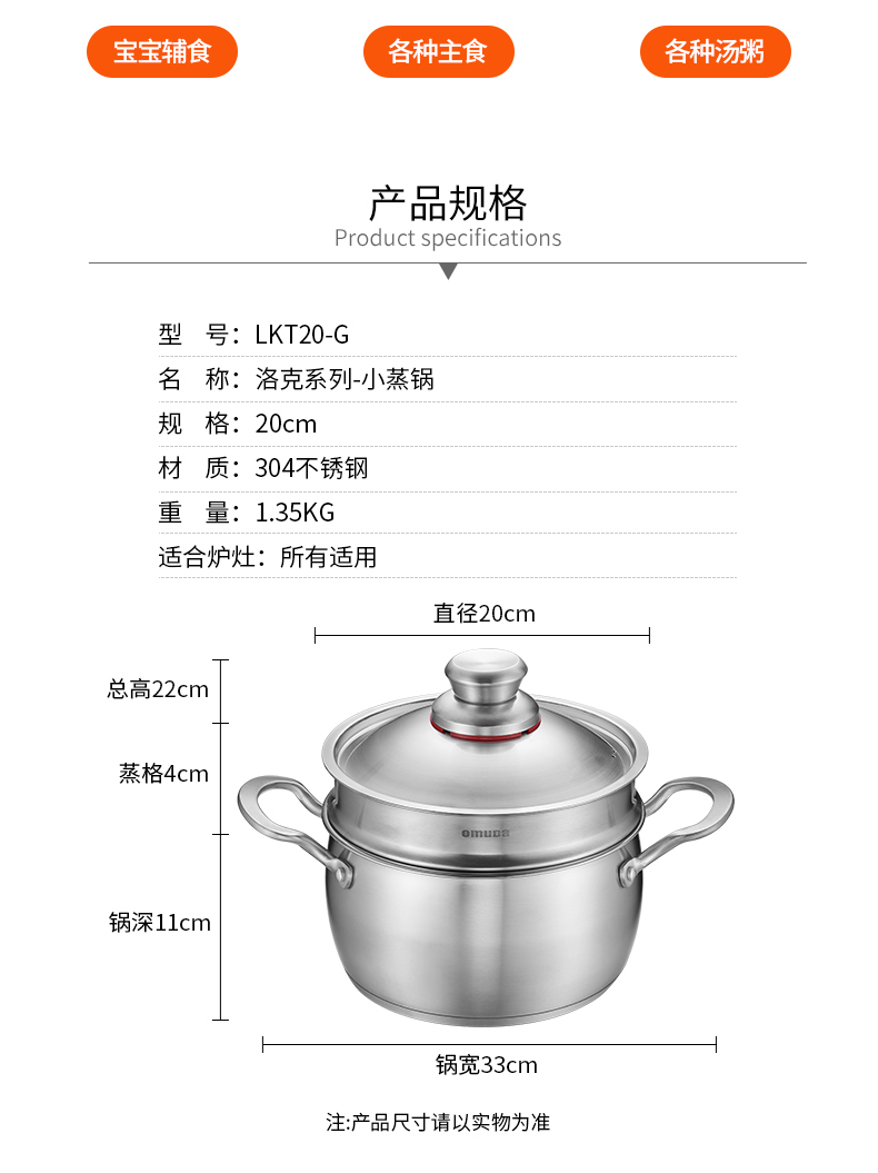 欧美达洛克系列-小蒸锅20cm LKT20-G 银色