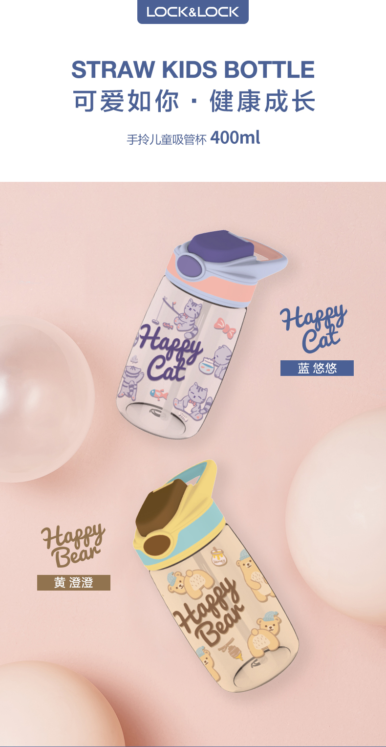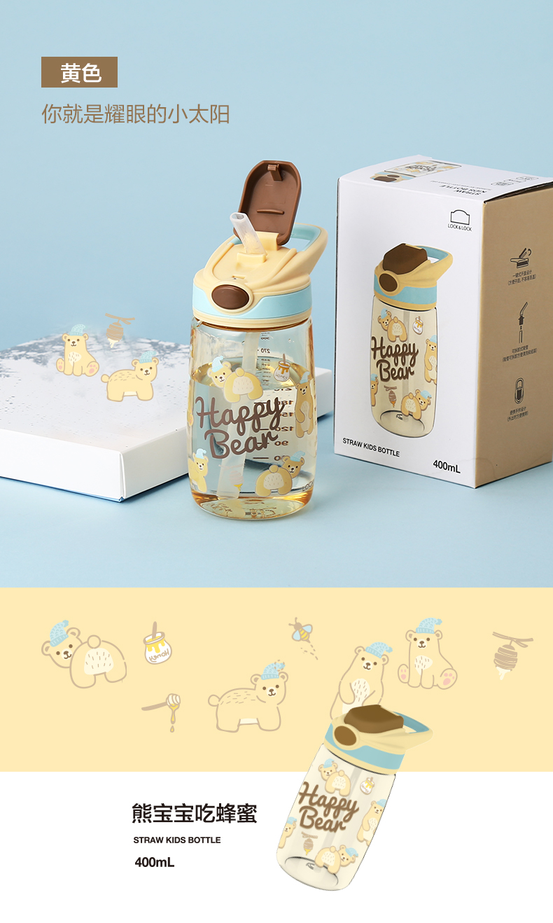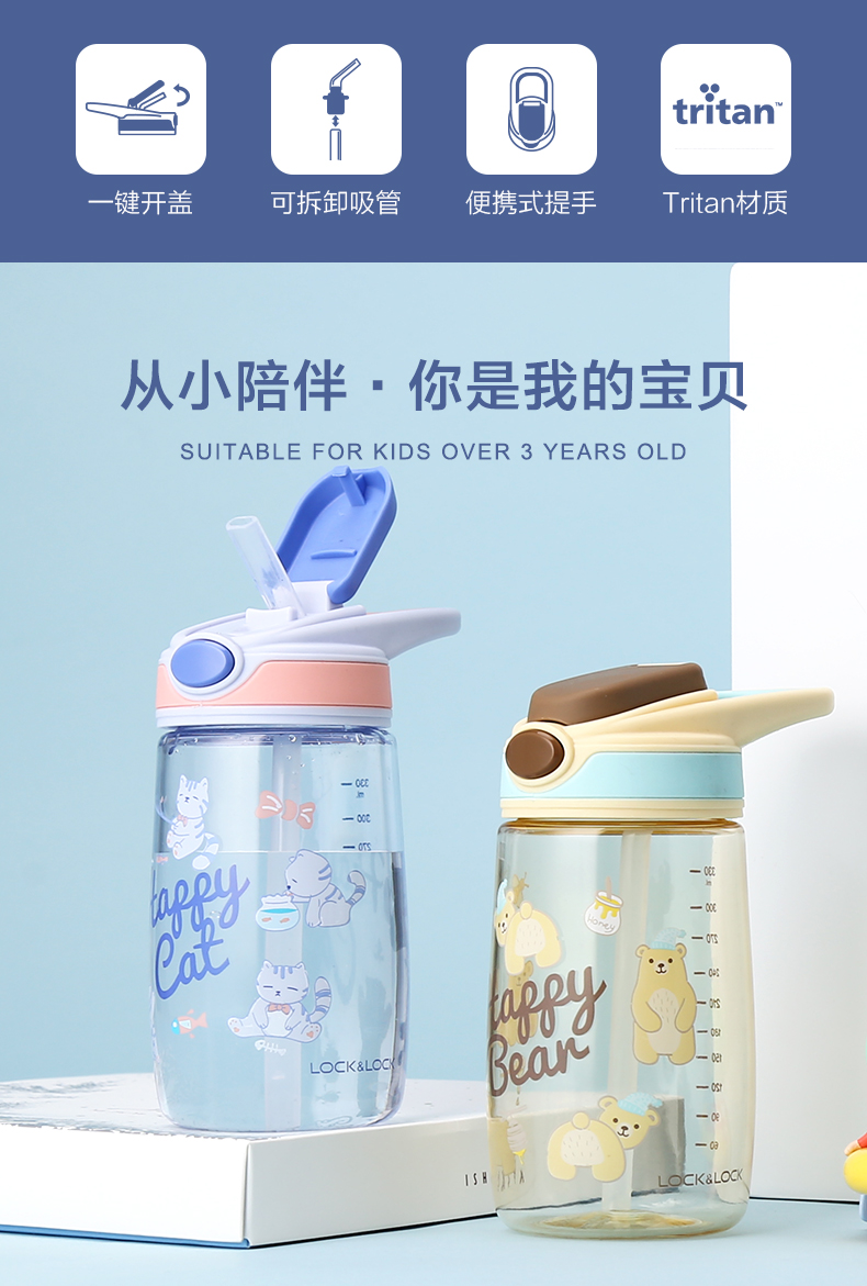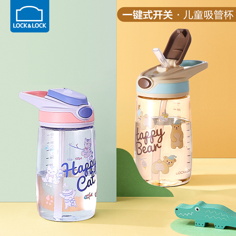 乐扣乐扣(LOCK&LOCK)吸管水杯儿童卡通可爱Tritan便携带刻度400mlABF655 个 蓝色