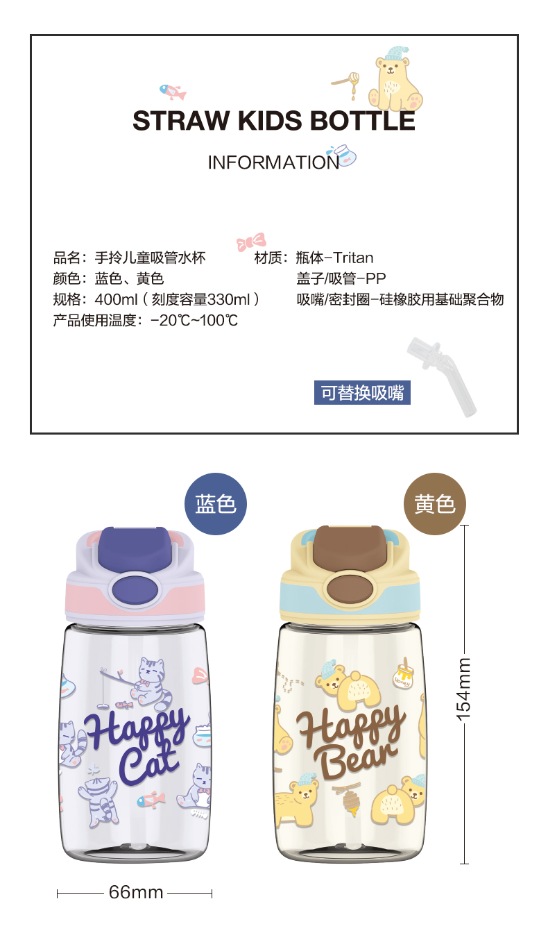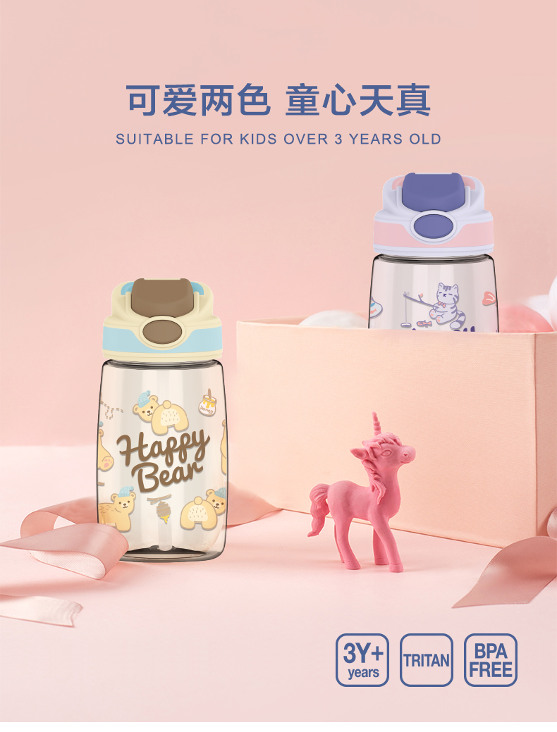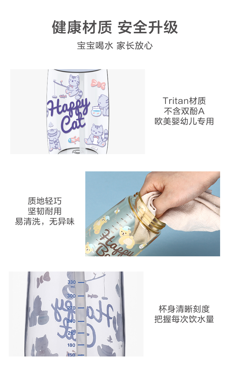 乐扣乐扣(LOCK&LOCK)吸管水杯儿童卡通可爱Tritan便携带刻度400mlABF655 个 蓝色