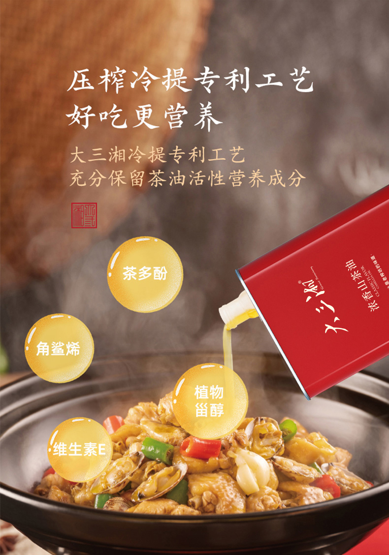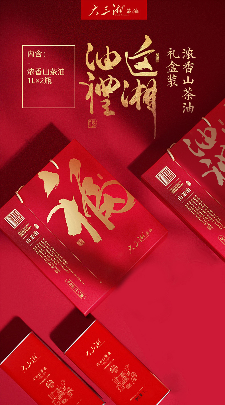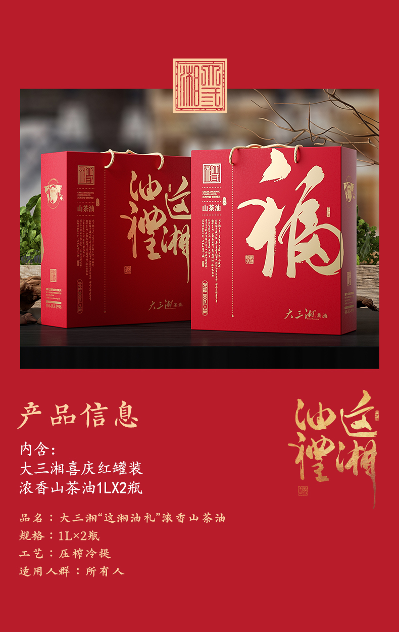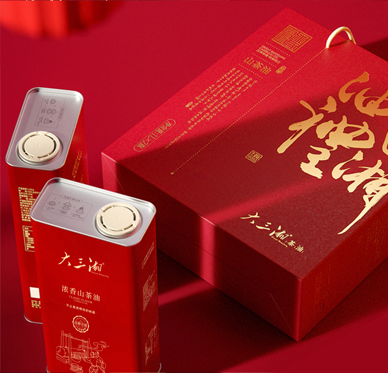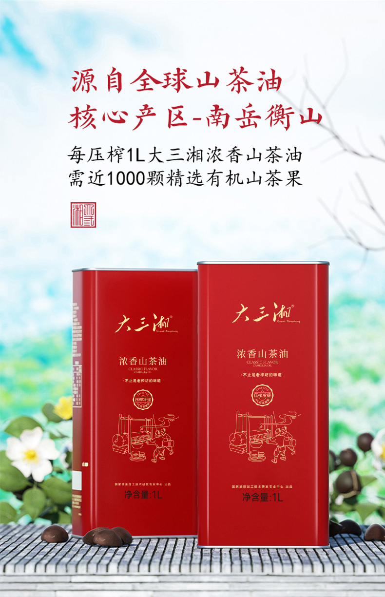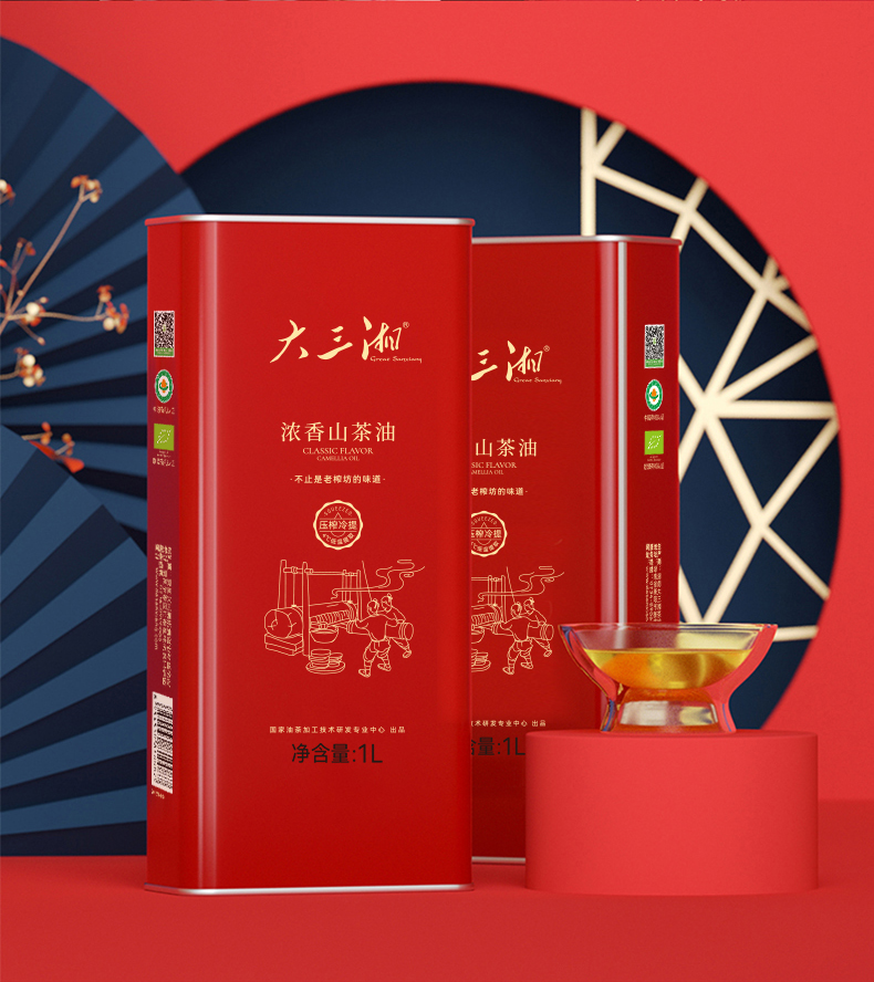 大三湘浓香有机压榨冷提山茶油1L*2/盒 自然色