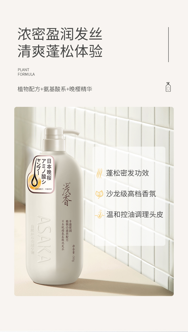浅香日本晚樱氨基酸洗发水500g/750g(单位:瓶) 本白色 750g