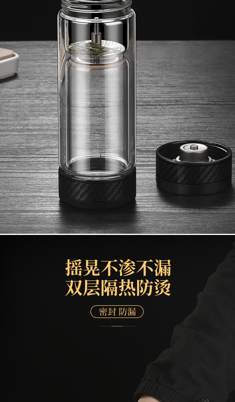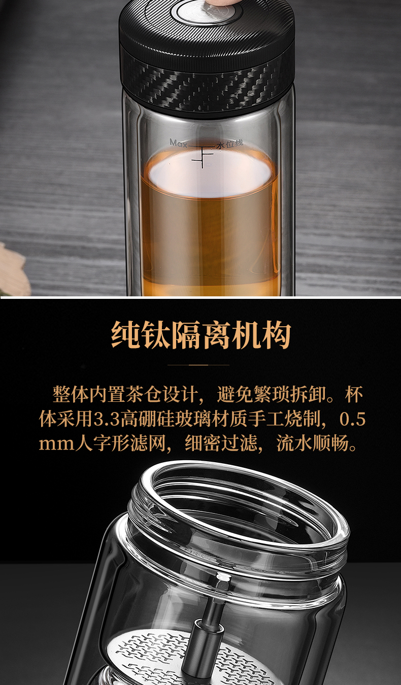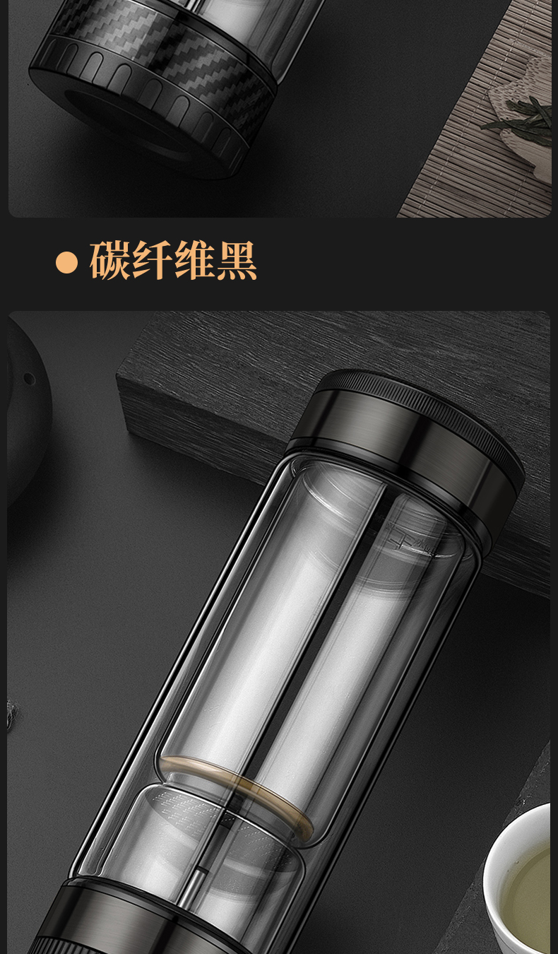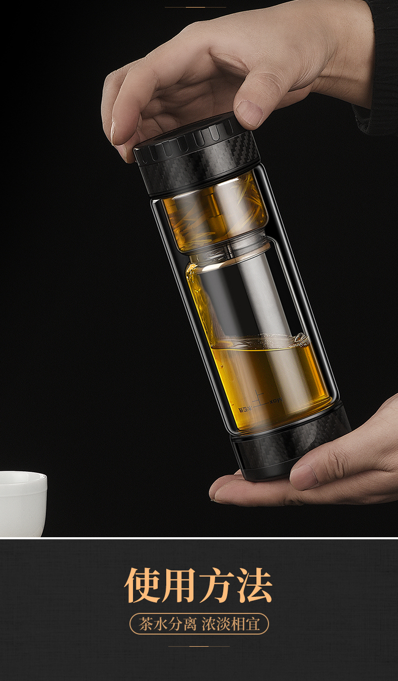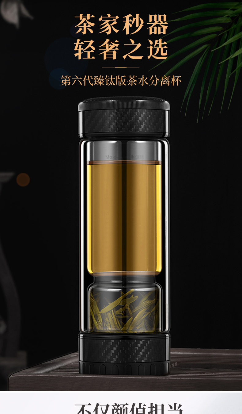 茶之恋 茶水分离玻璃杯钛臻版 380ml 黑色