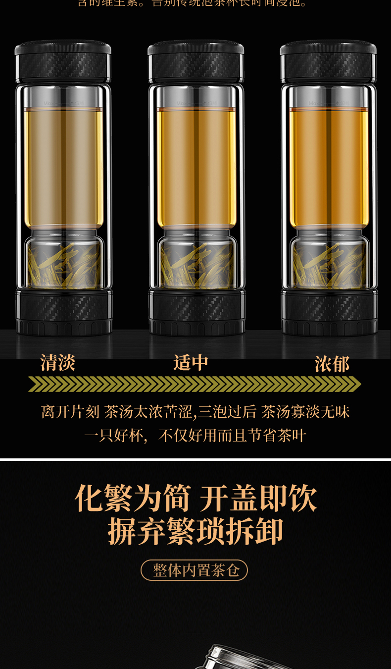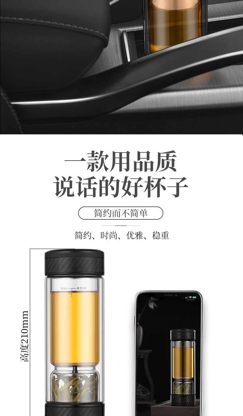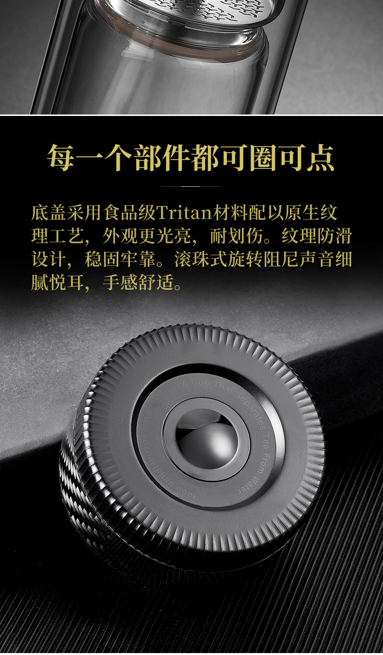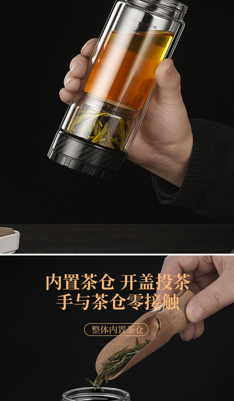 茶之恋 茶水分离玻璃杯钛臻版 380ml 黑色