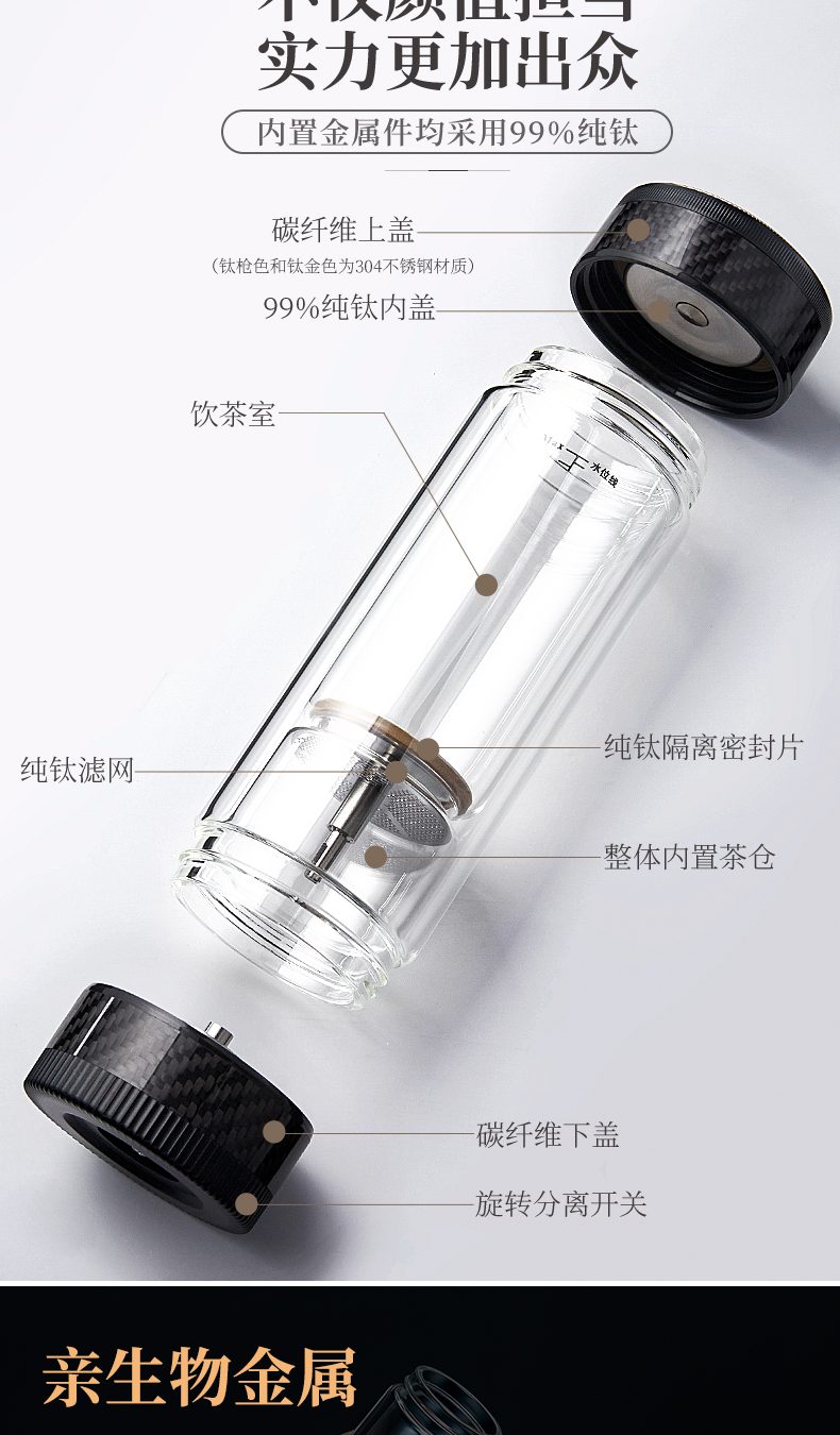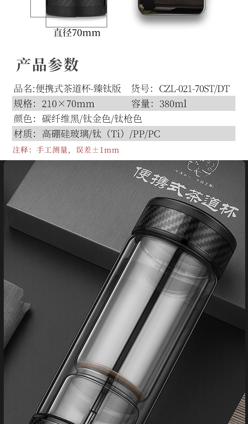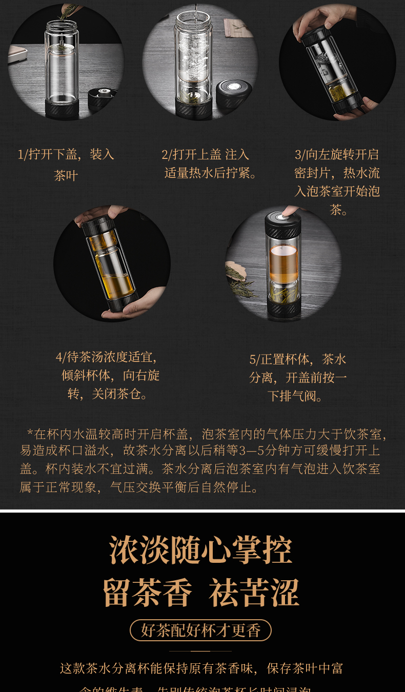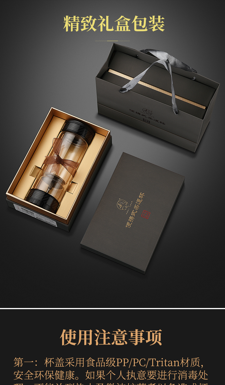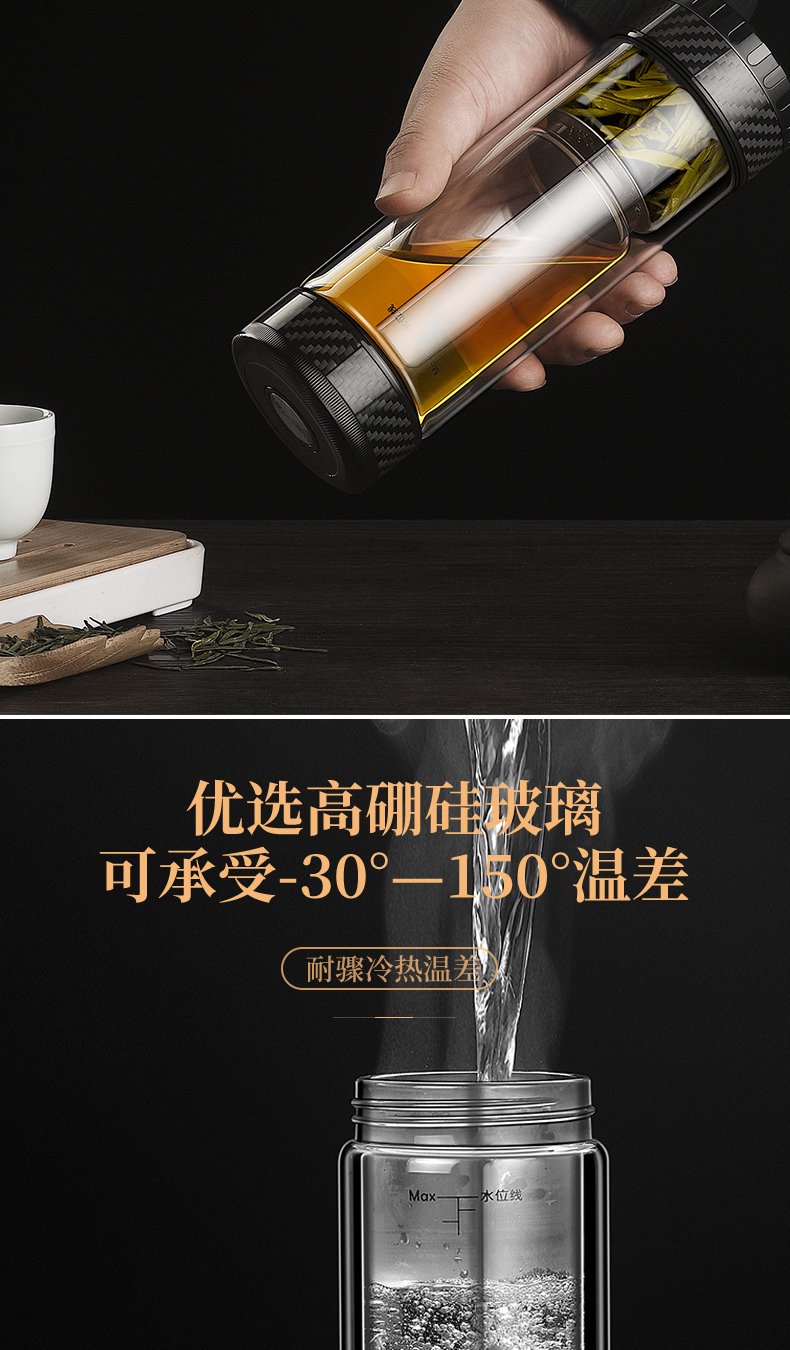 茶之恋 茶水分离玻璃杯钛臻版 380ml 黑色