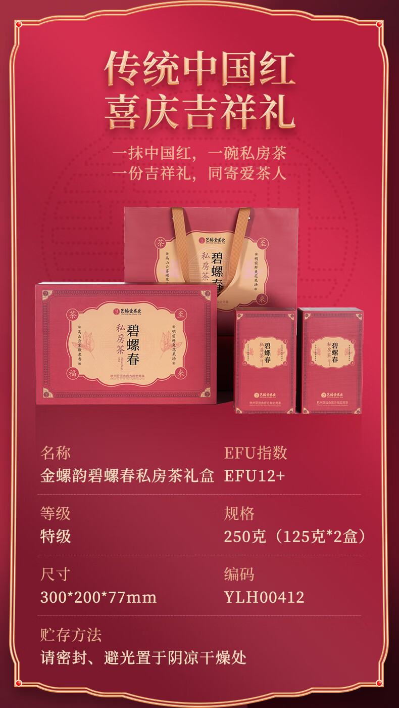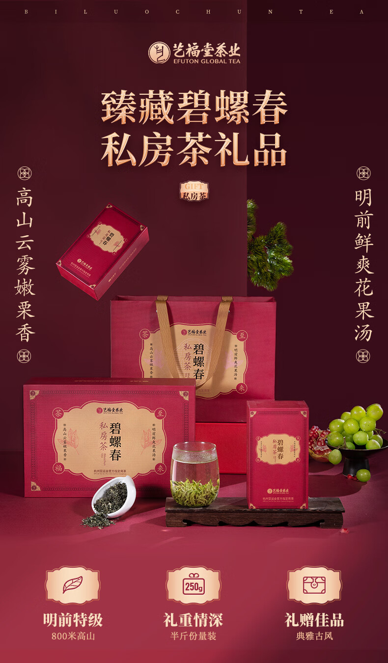 艺福堂茶 绿茶碧螺春 明前特级 礼盒装250g 单位:盒 春生礼盒250g