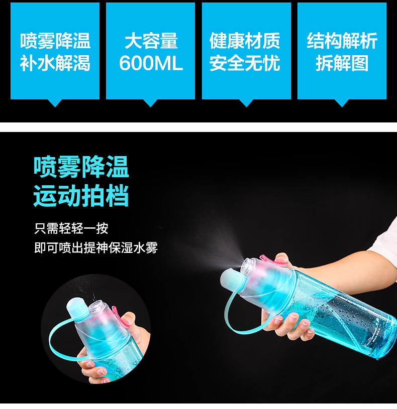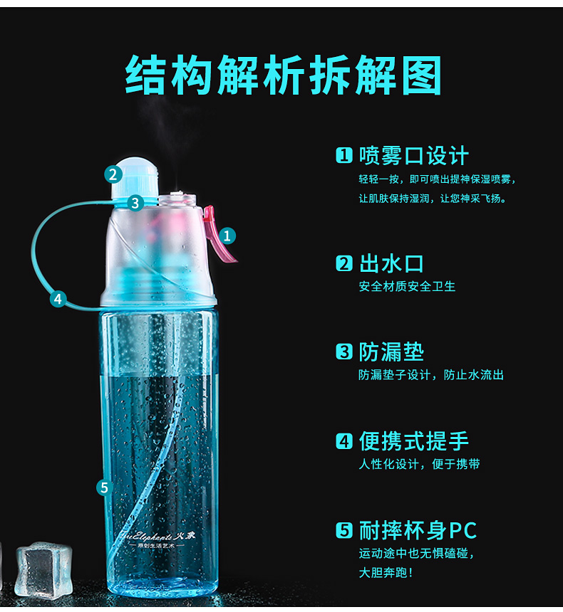 火象JIMMY喷雾杯 600ML HXF-PC056(单位:个)图片色 深蓝色
