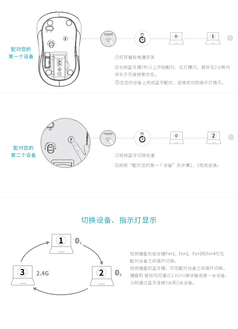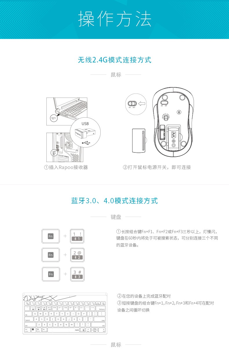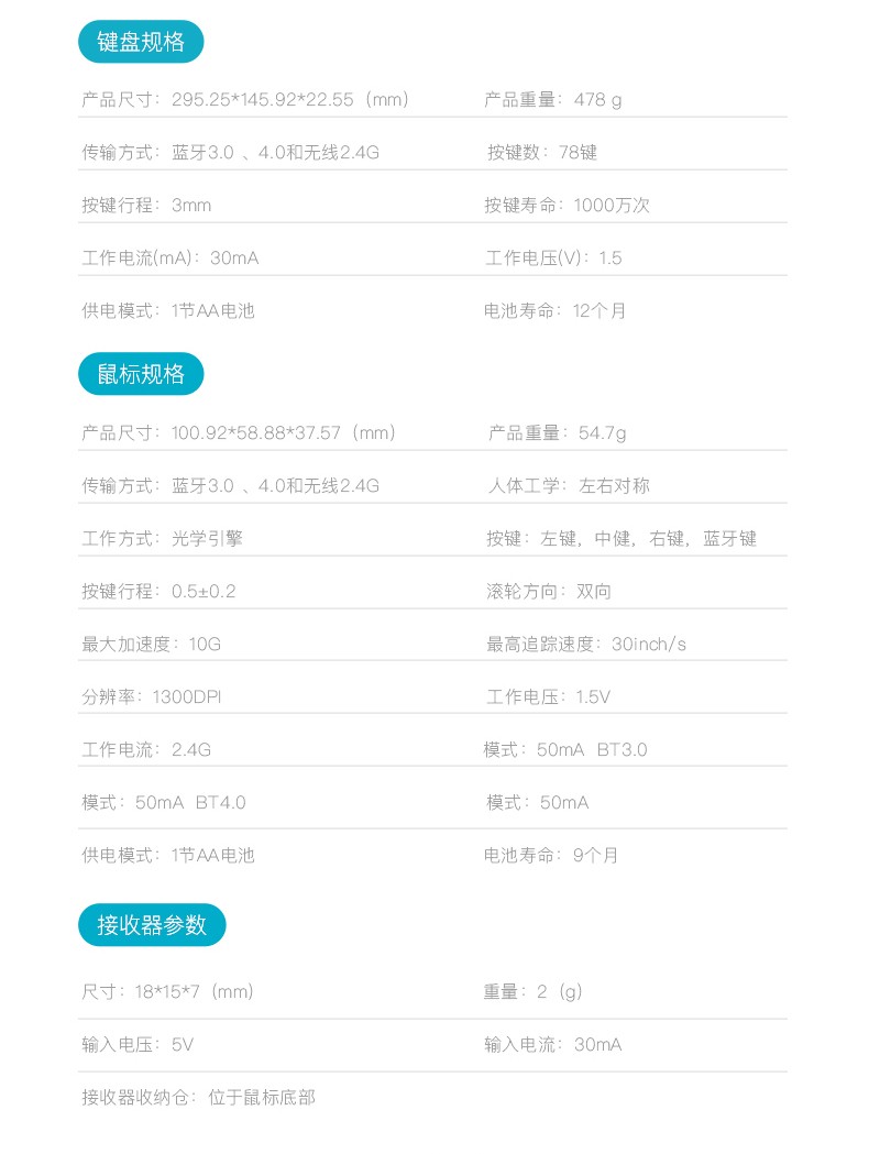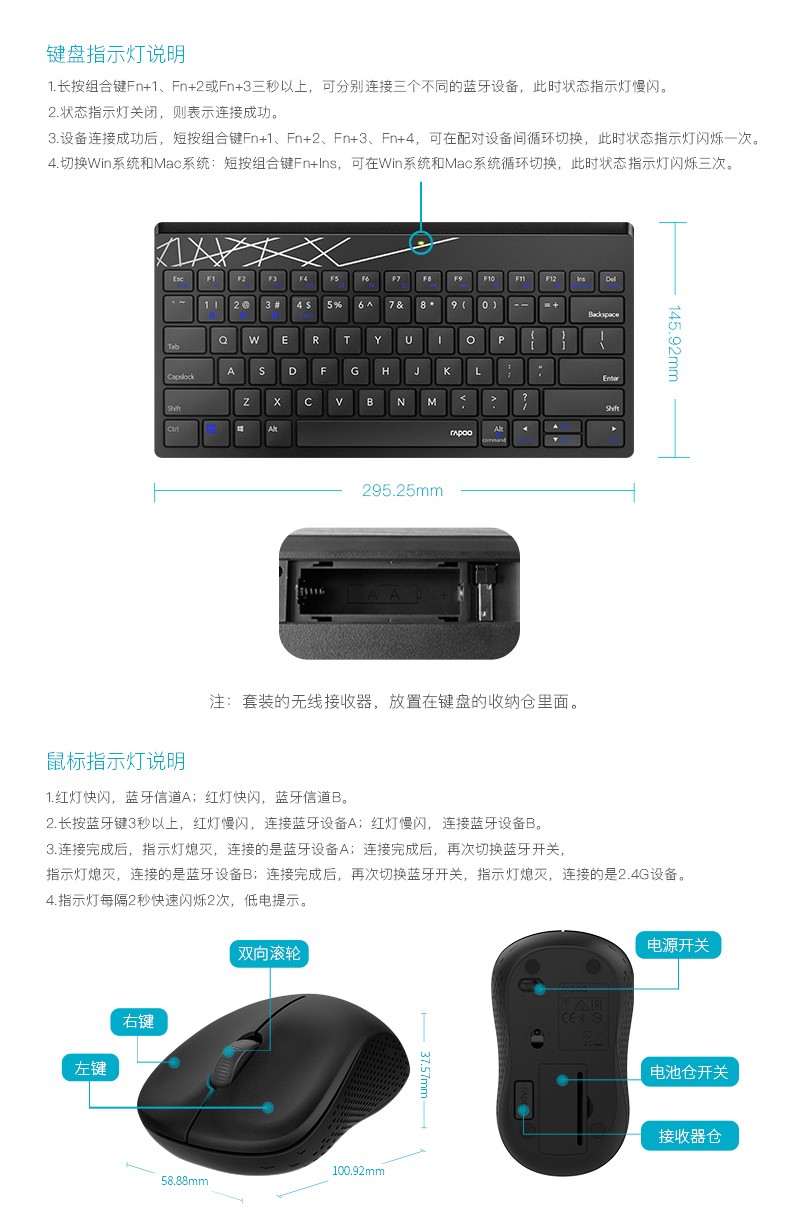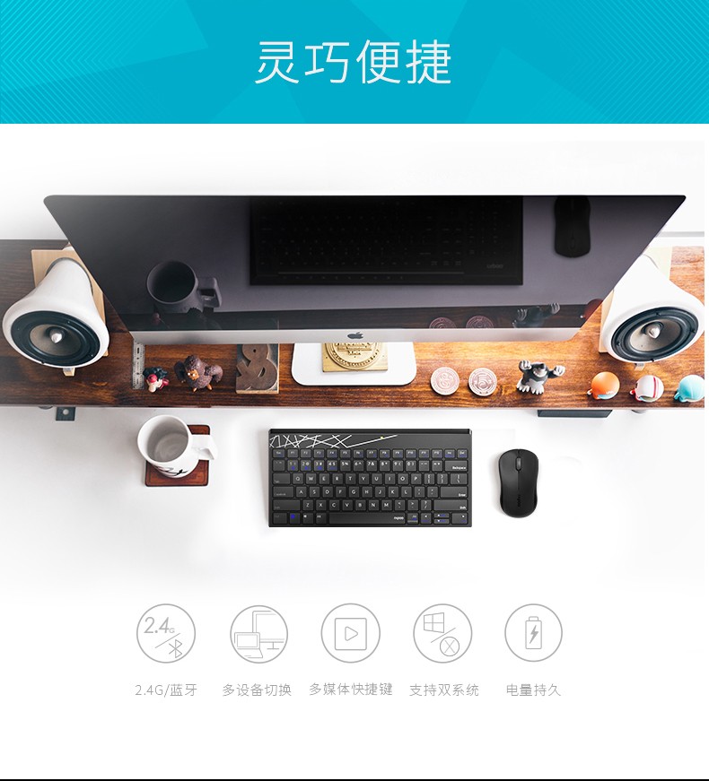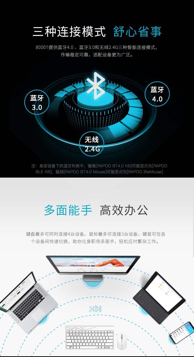雷柏8000GT多模式无线键鼠套装(黑色) 黑色