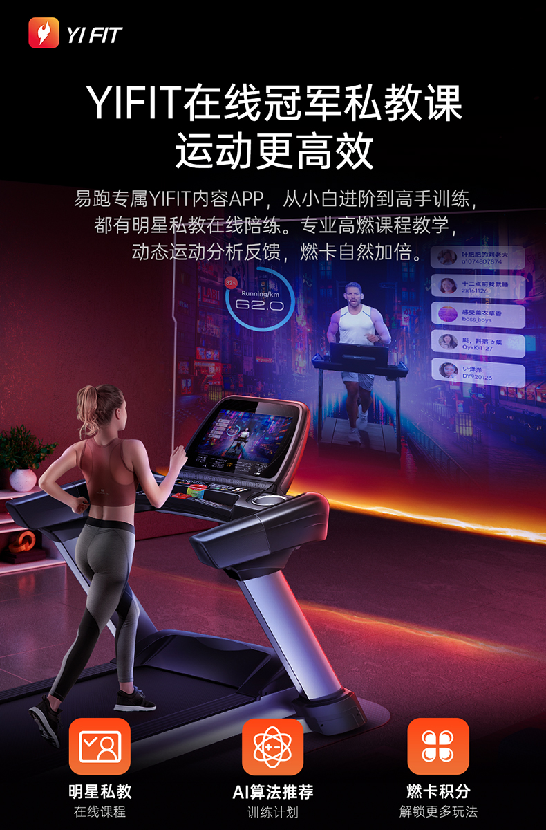易跑M8 豪华家用商用电动跑步机 高端可折叠交流电机健身房专用彩屏(HUAWEI HiLink) 黑色