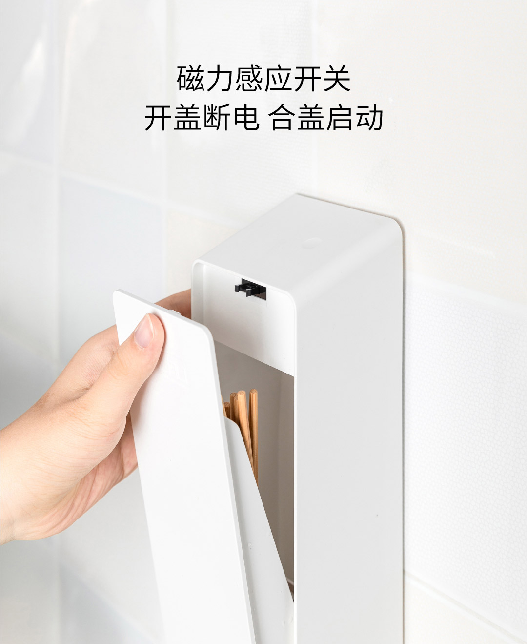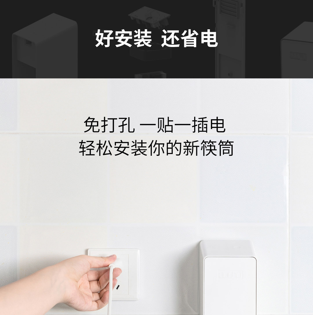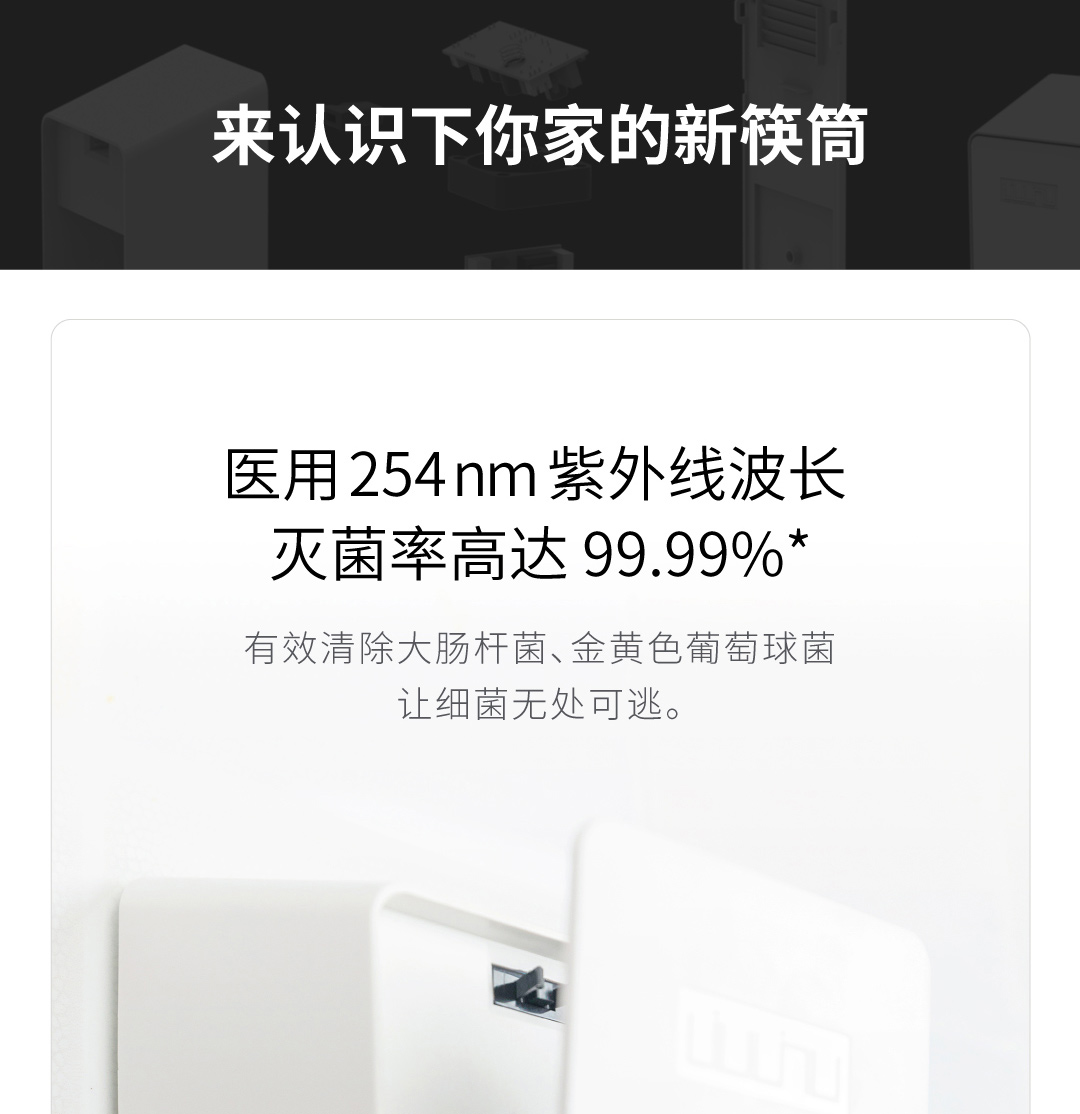 六竖免打孔智能杀菌收纳筷筒/小型筷子消毒机 白色