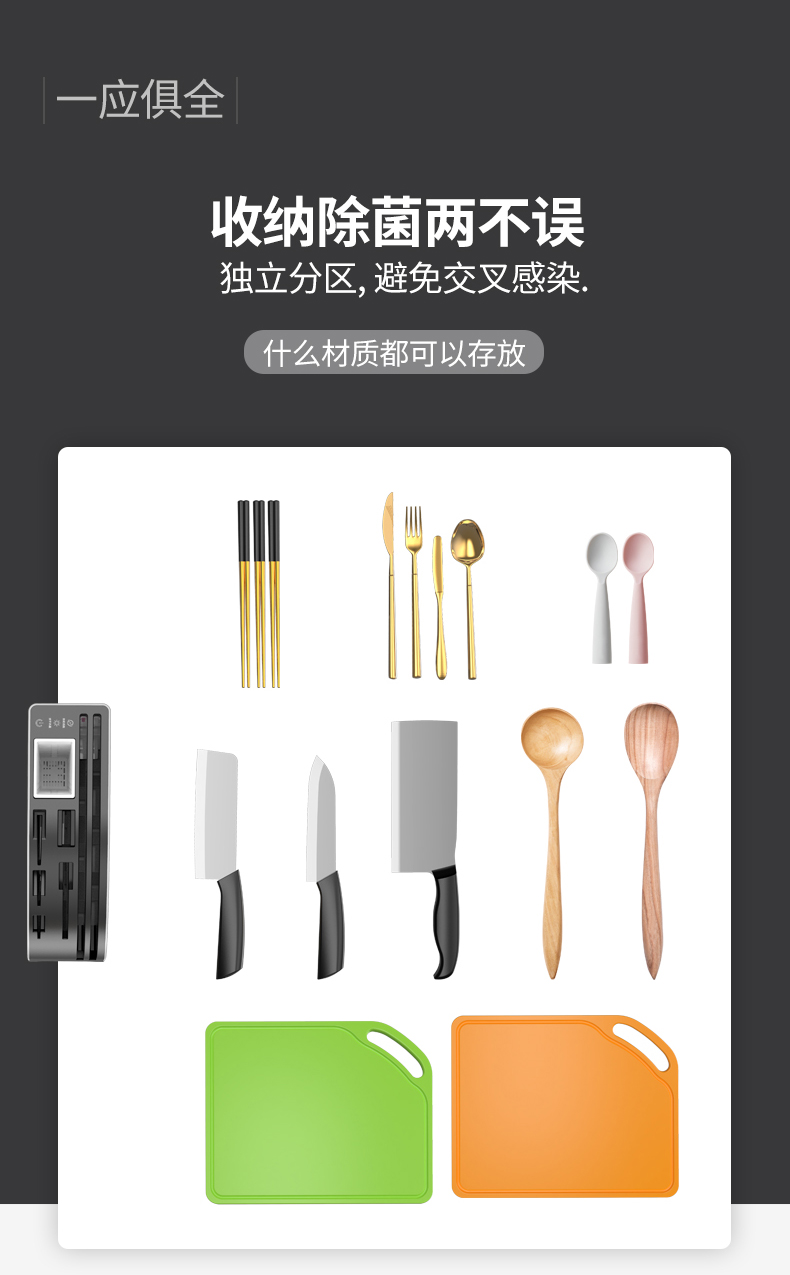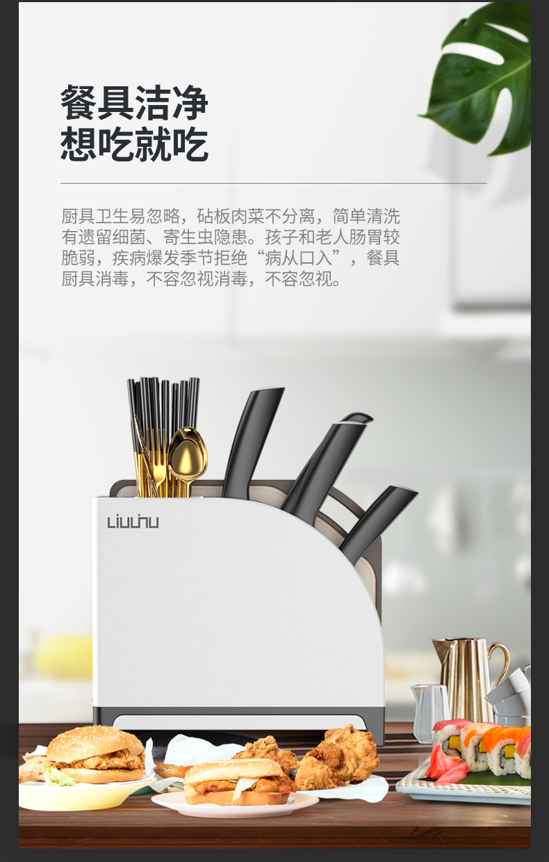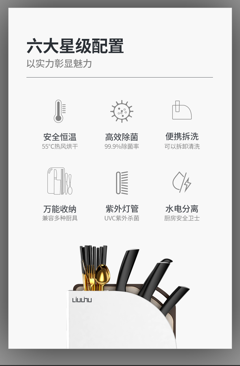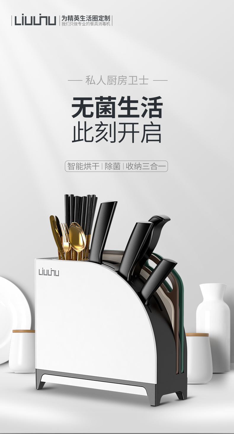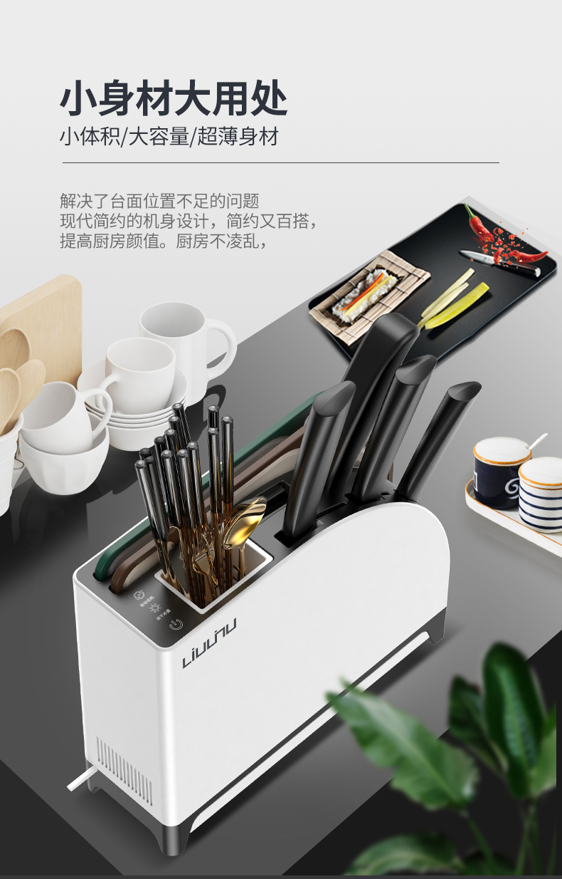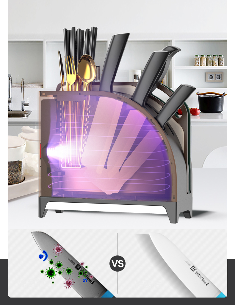六竖家用紫外线杀菌消毒/烘干/收纳一体菜板刀筷架Pro 白色