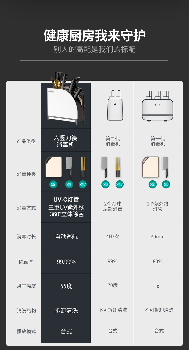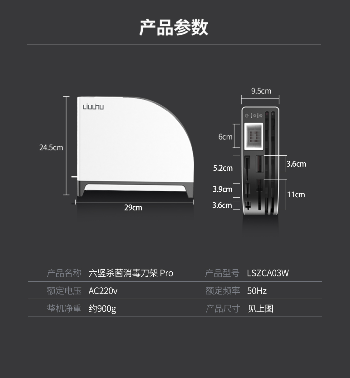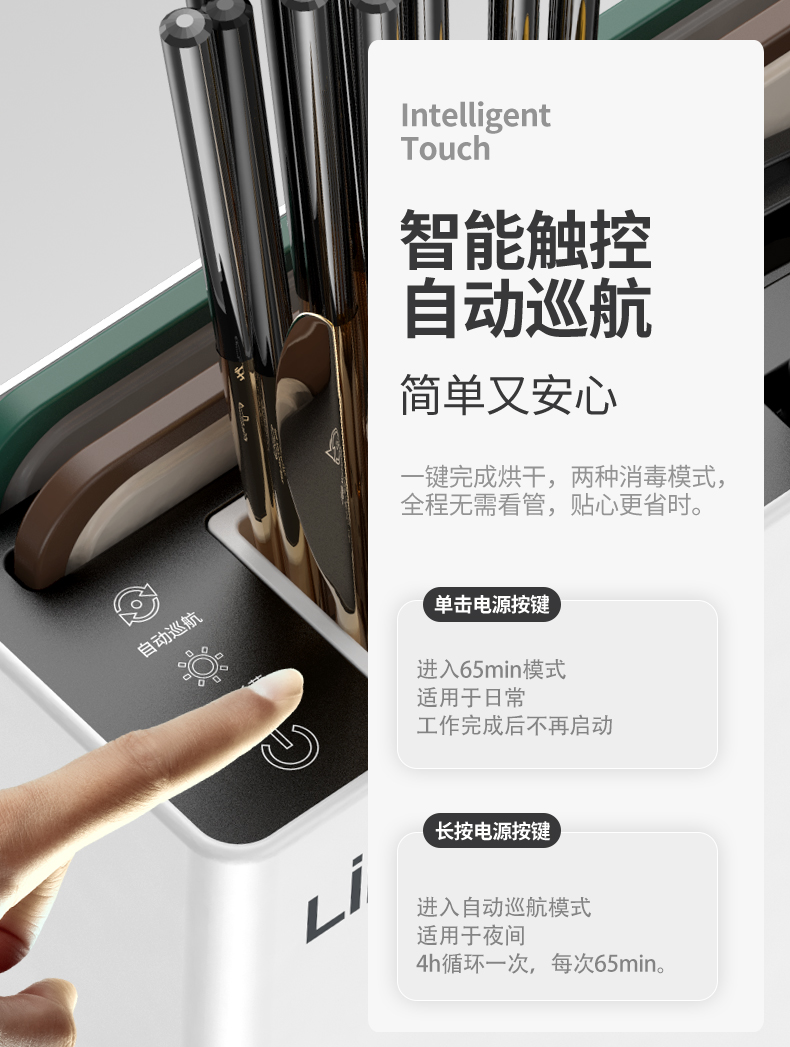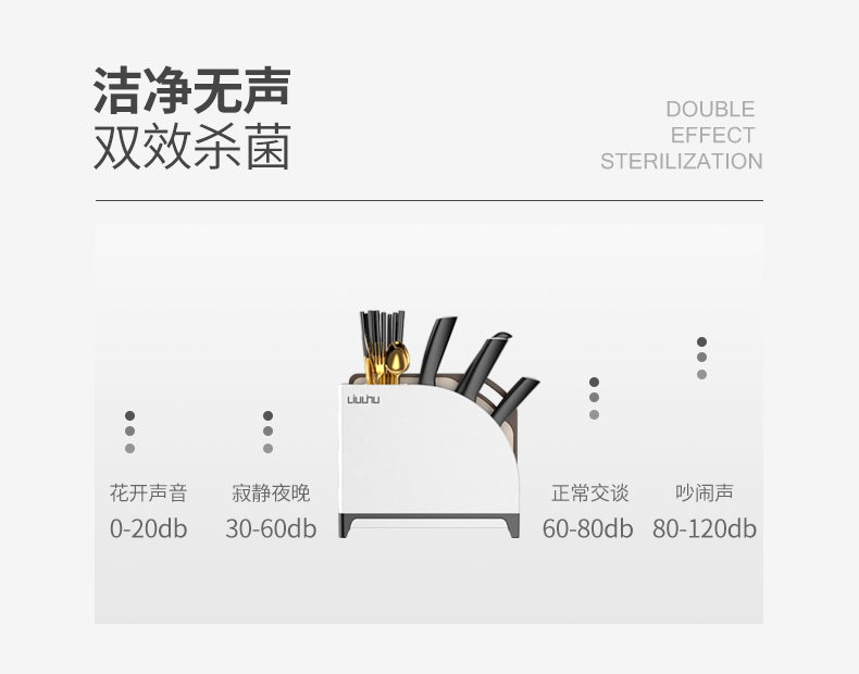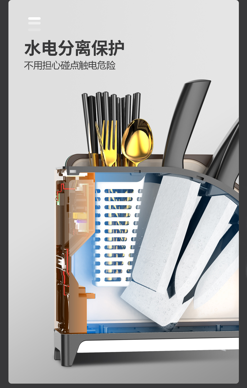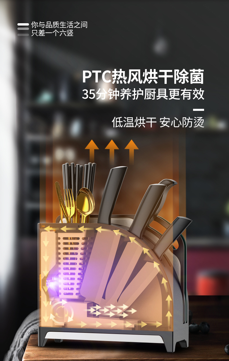 六竖家用紫外线杀菌消毒/烘干/收纳一体菜板刀筷架Pro 白色