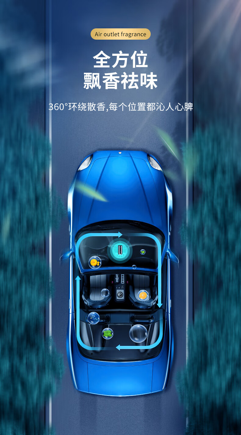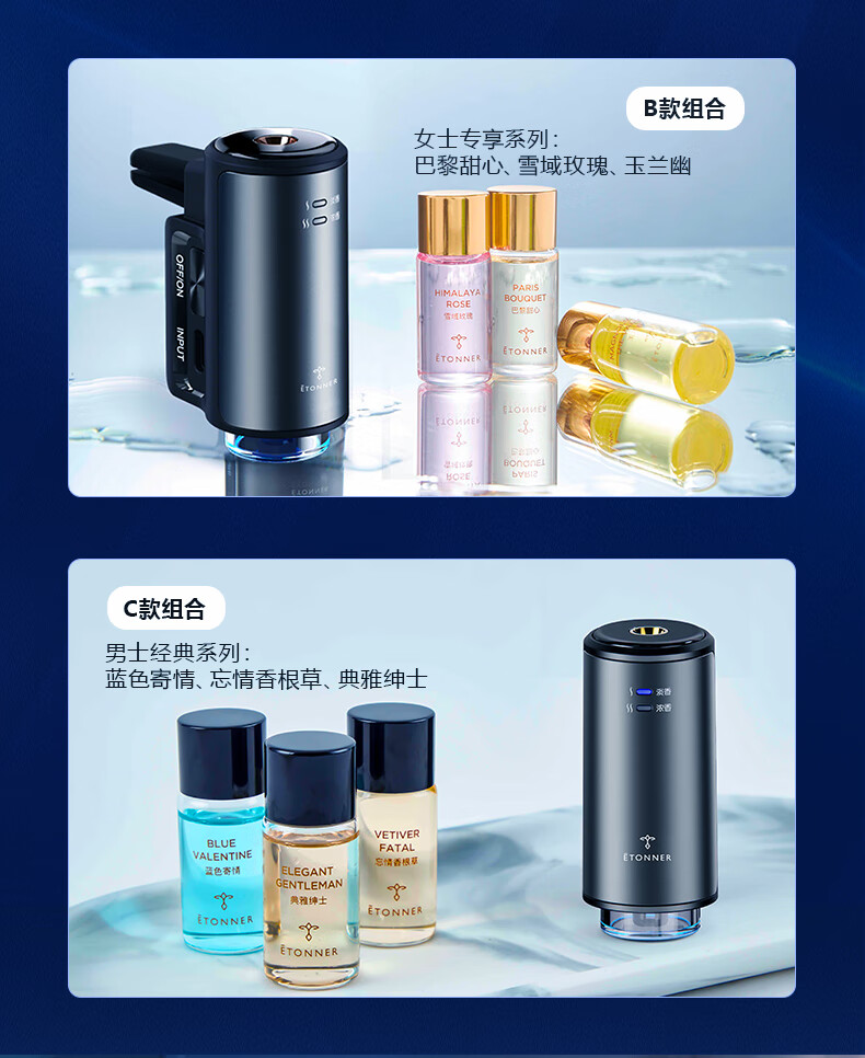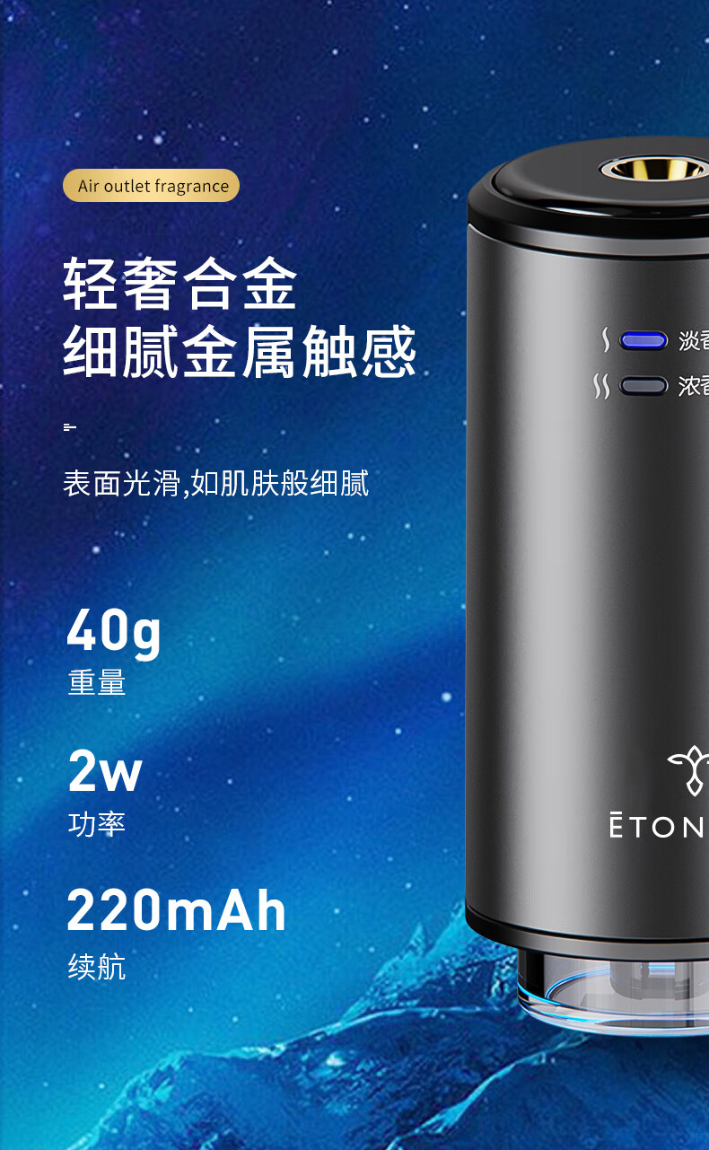 途雅(ETONNER)车载出风口智能香薰仪 随车启停喷雾香薰 电子香氛纳米除异味 高档合金B款/盒
