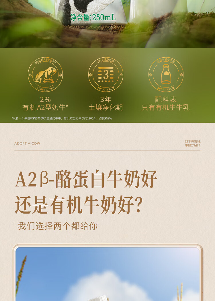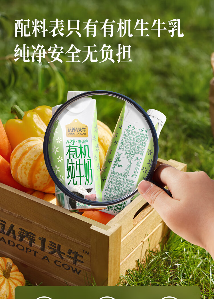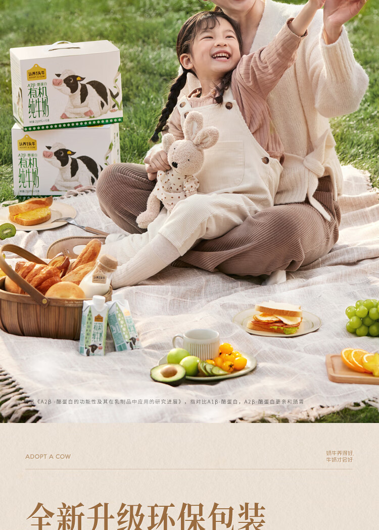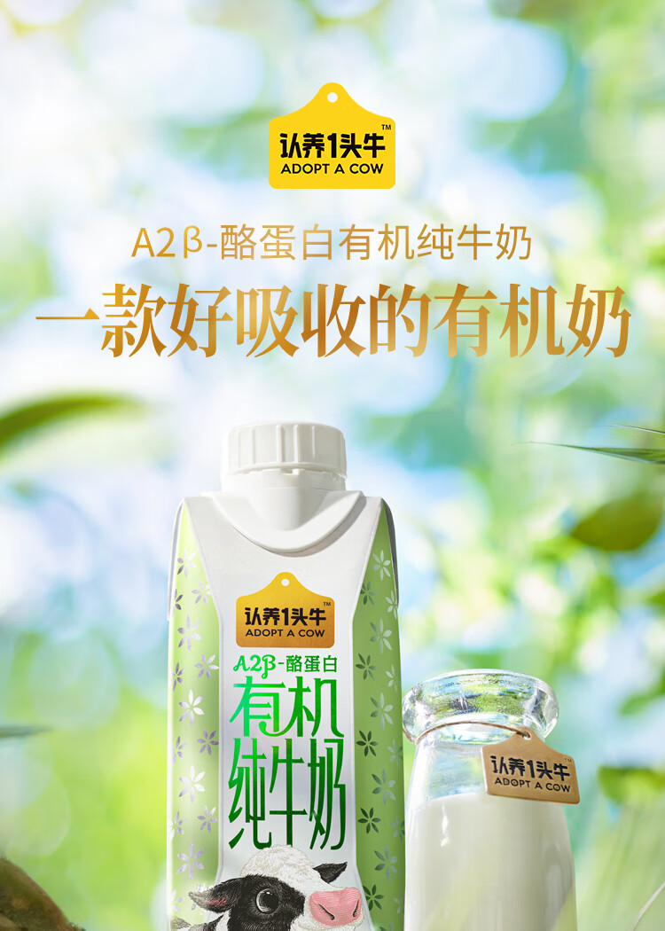 认养一头牛A2β-酪蛋白有机纯牛奶 250ml*10盒*2箱(单位:组) 白色