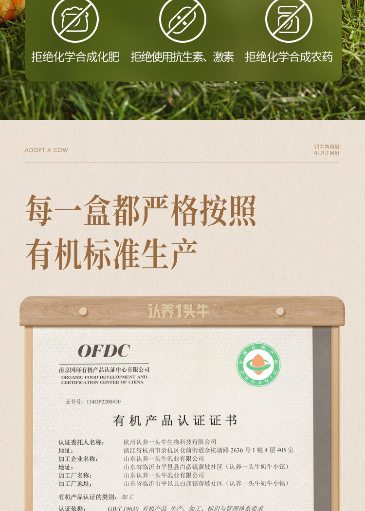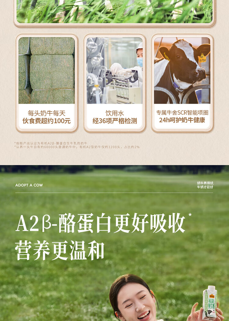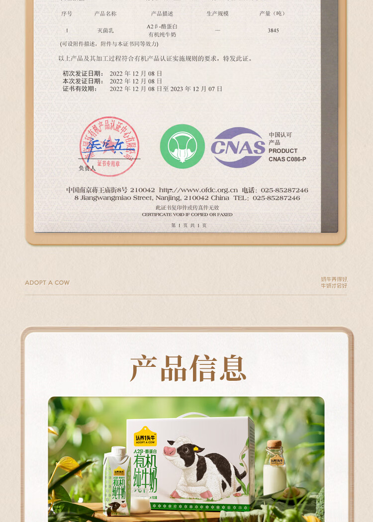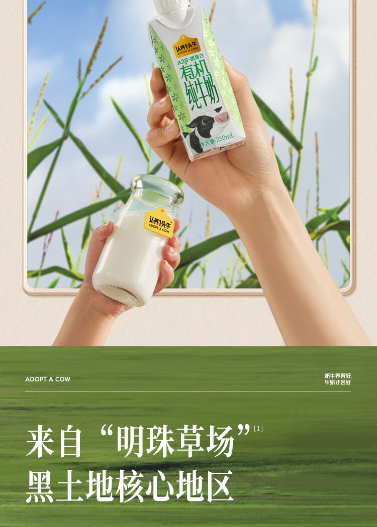 认养一头牛A2β-酪蛋白有机纯牛奶 250ml*10盒*2箱(单位:组) 白色