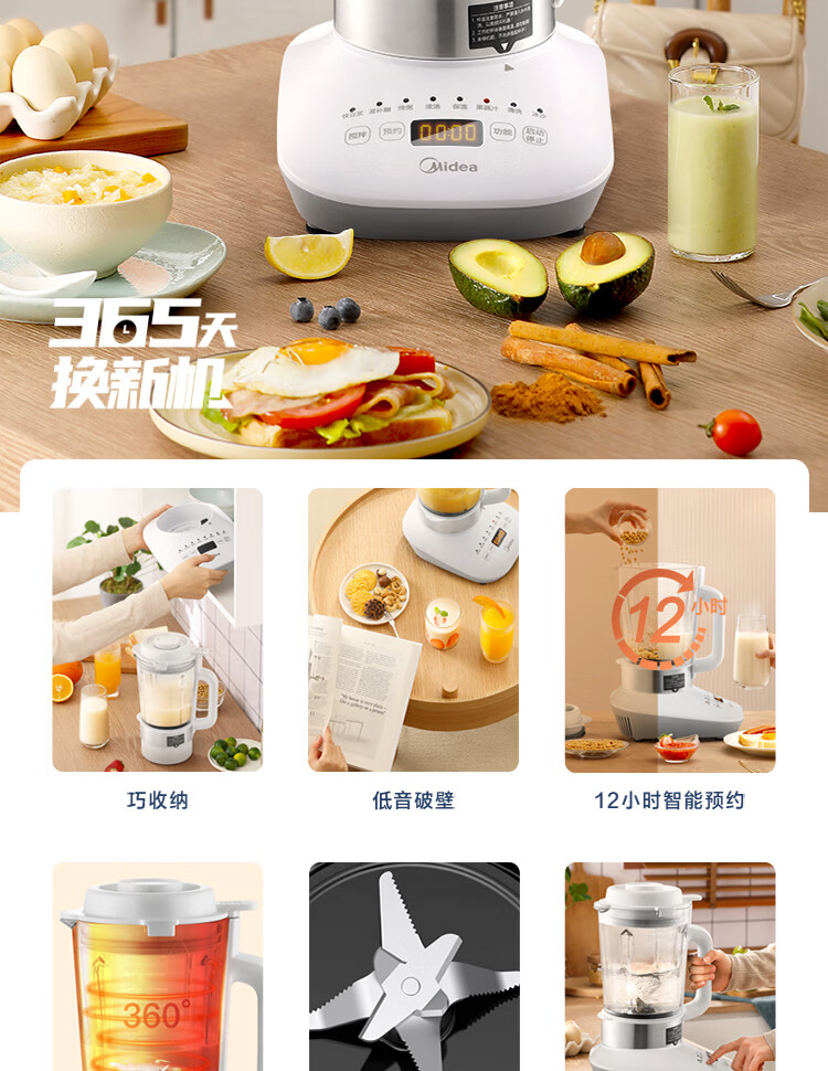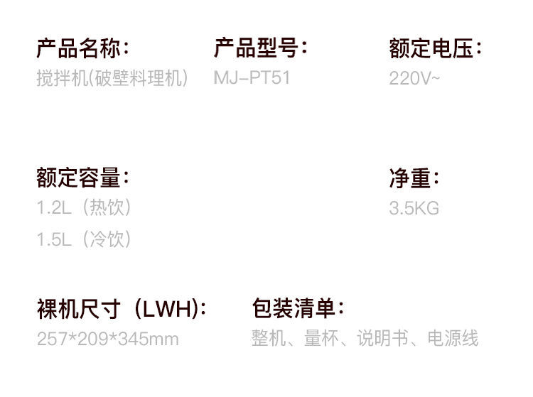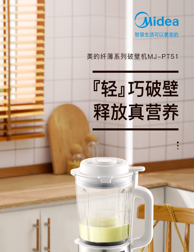 美的(Midea)破壁机搅拌机料理机PT51(单位:台) 白色