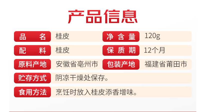 方家铺子 广西桂皮120g单位:瓶 棕色