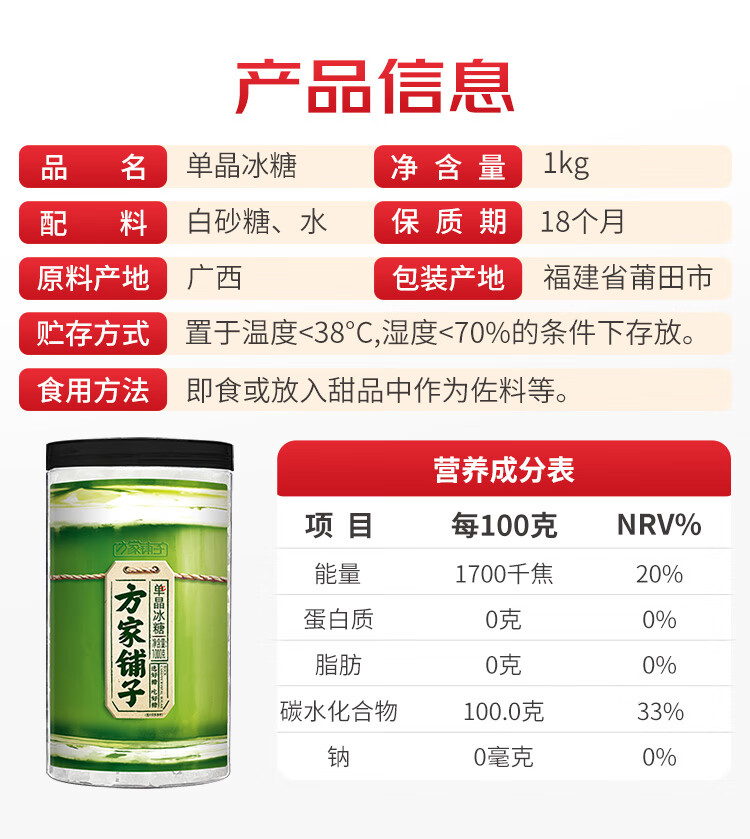方家铺子中华老字号 单晶冰糖1kg 小块白冰糖 烘焙西点食糖花茶甜汤伴侣