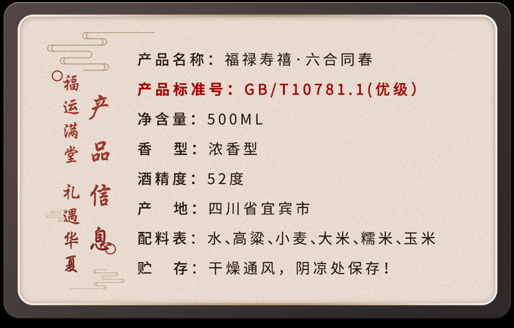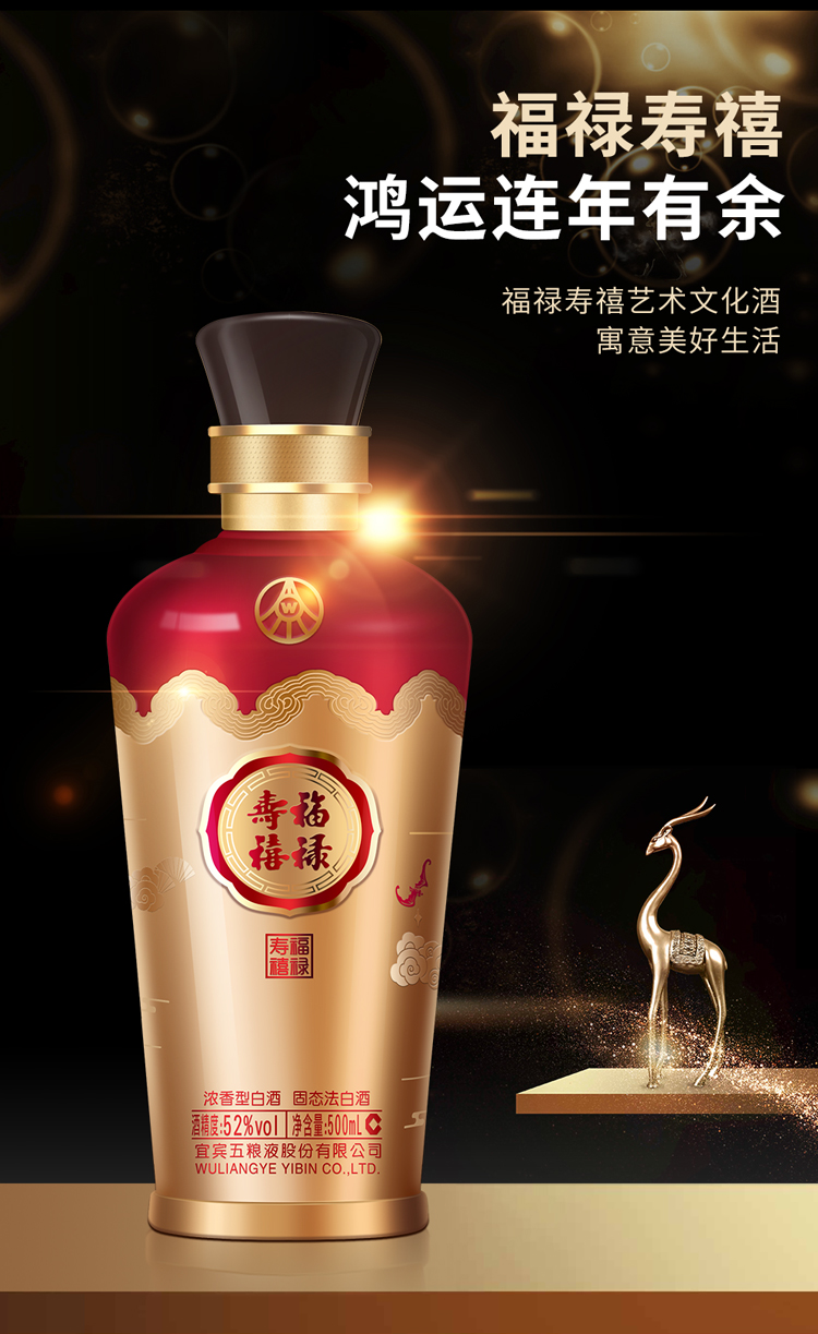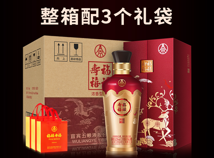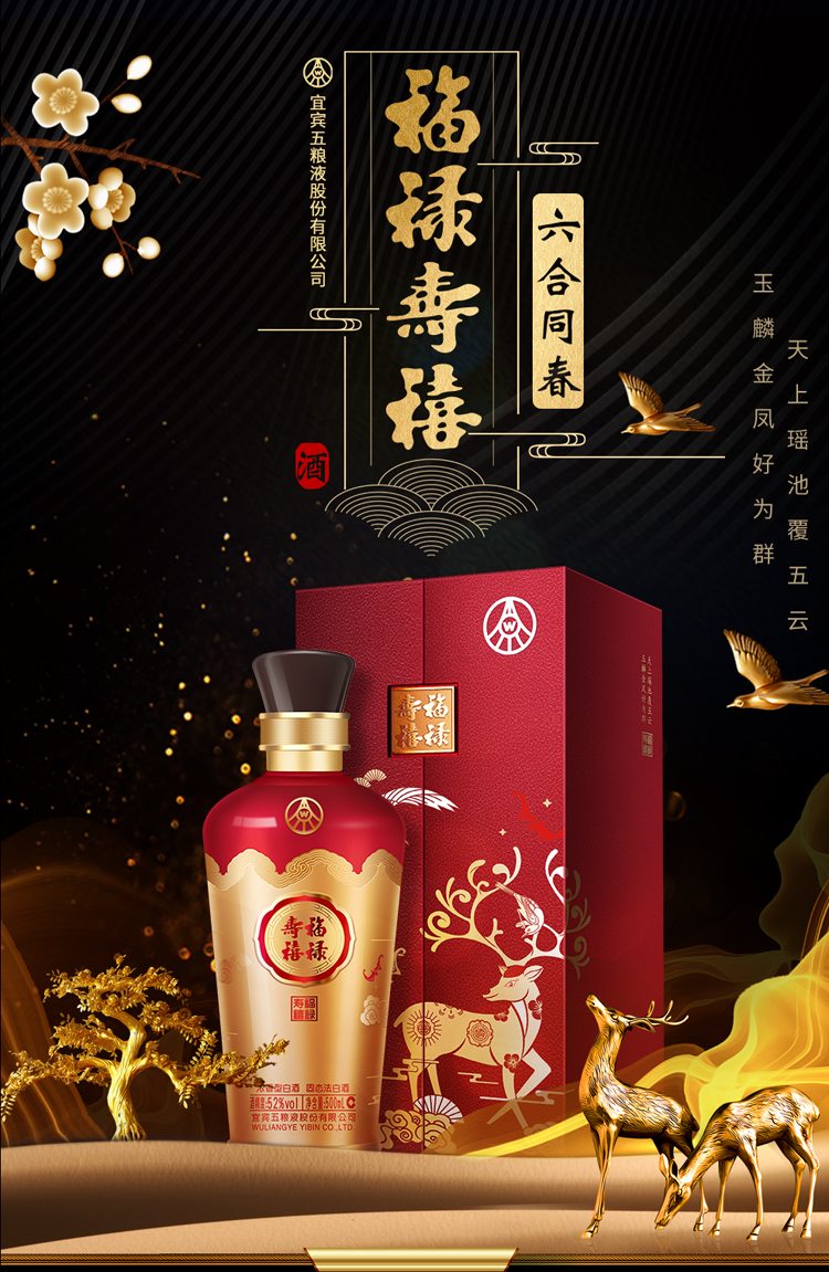 五粮液股份 福禄寿禧六合同春 浓香型白酒 52度 500ml*6瓶 整箱 枫叶色