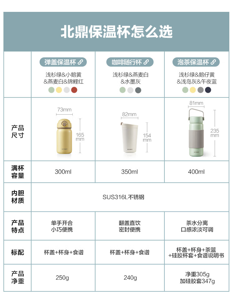 北鼎 饮水器具 CD1012咖啡保温杯 350ml 浅杉绿(单位:台) 浅衫绿