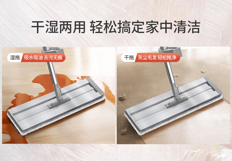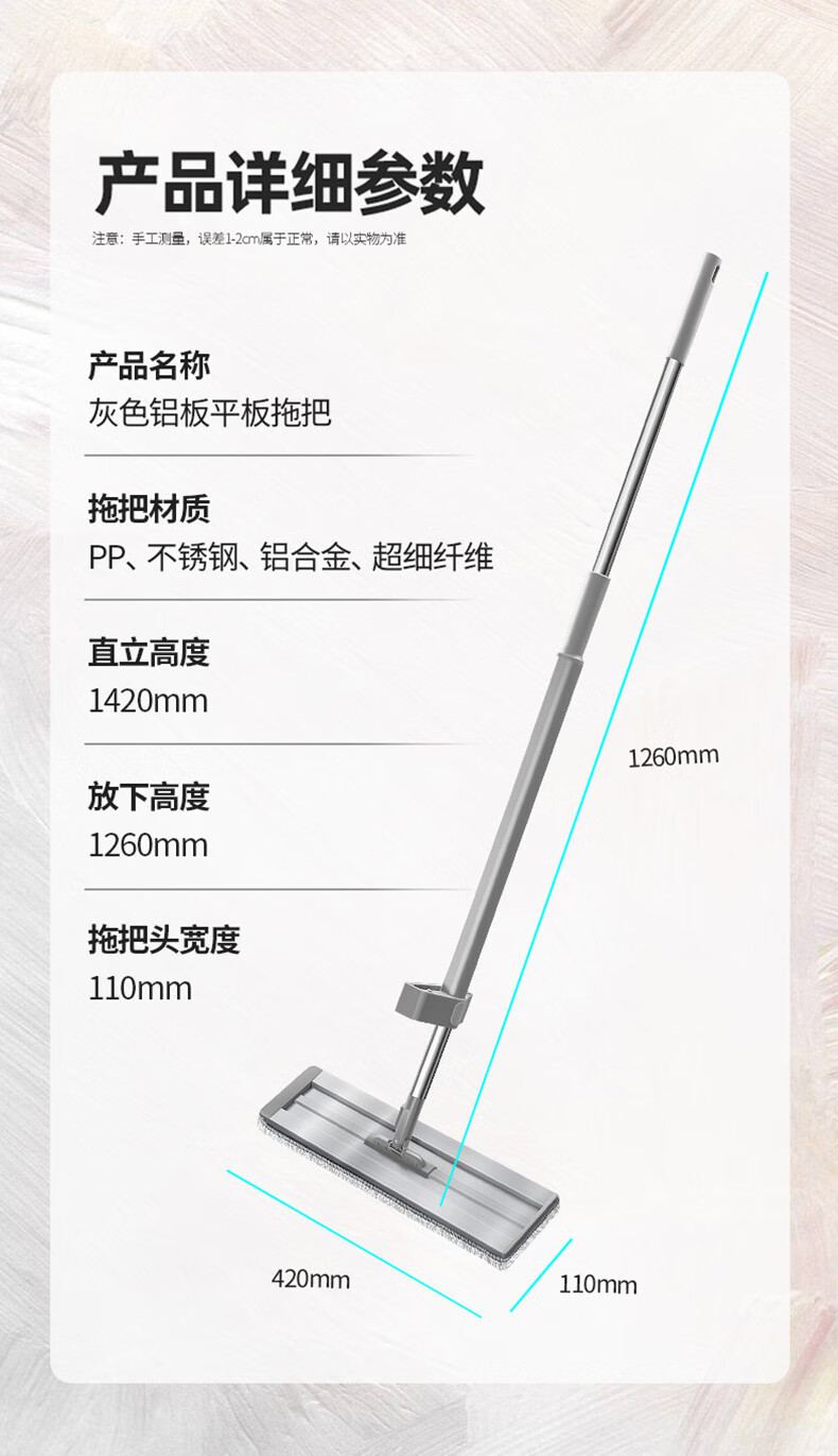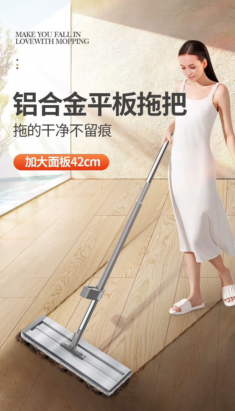 百家好世 铝板免手洗平拖42cm灰色标准款/2布装 42cm铝板平拖2布