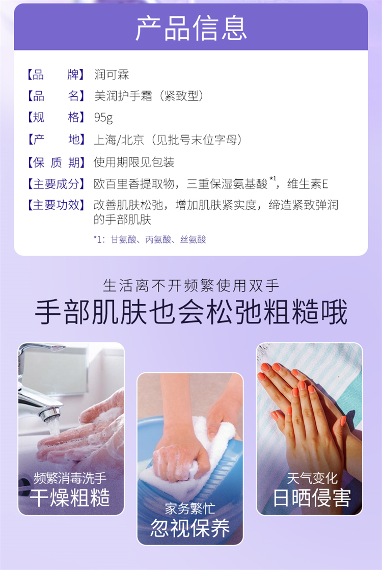 润可霖 美润弹润紧致型护手霜95g 紧致型