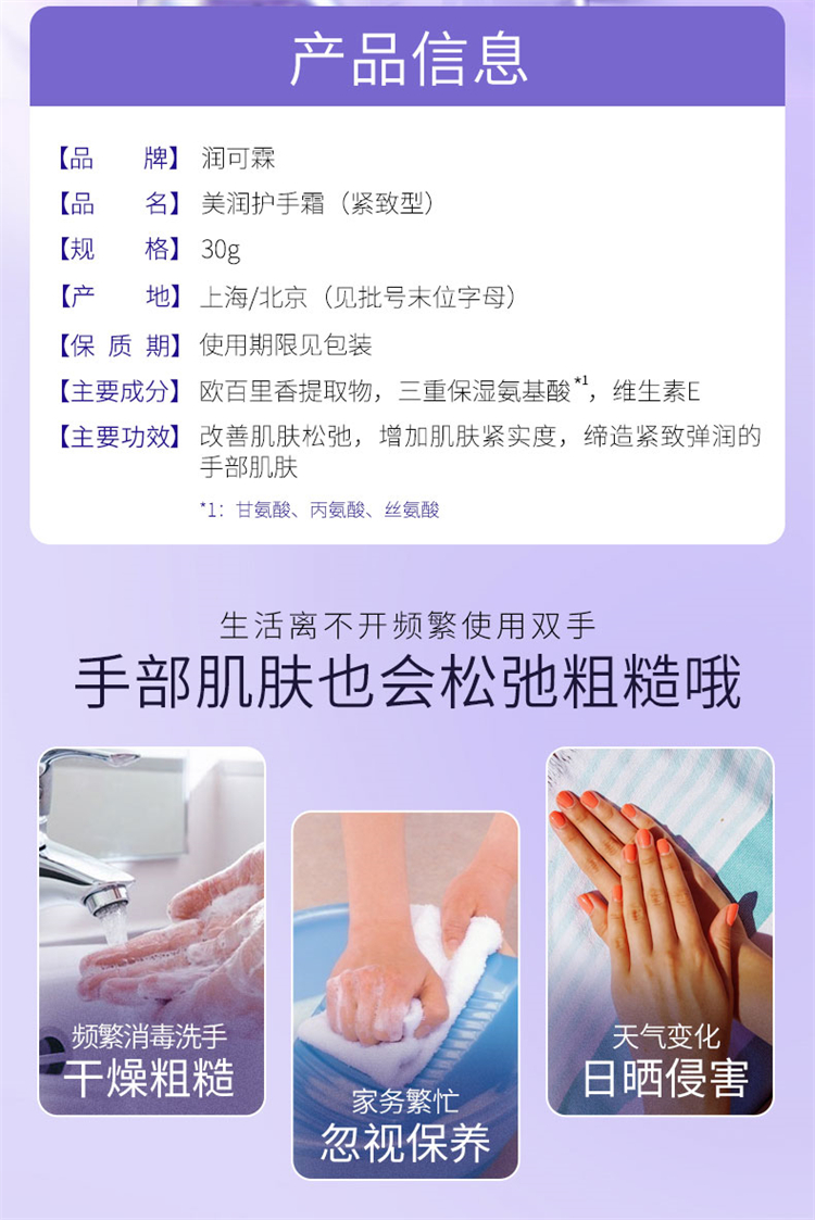 润可霖 美润弹润紧致型护手霜30g 紧致型30g