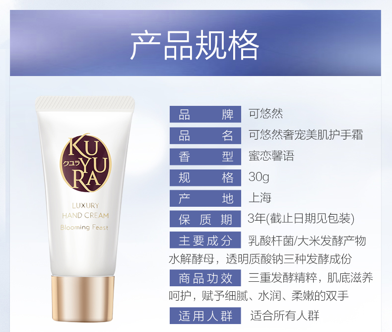 资生堂可悠然奢宠美肌护手霜(蜜恋馨语)30g 白色